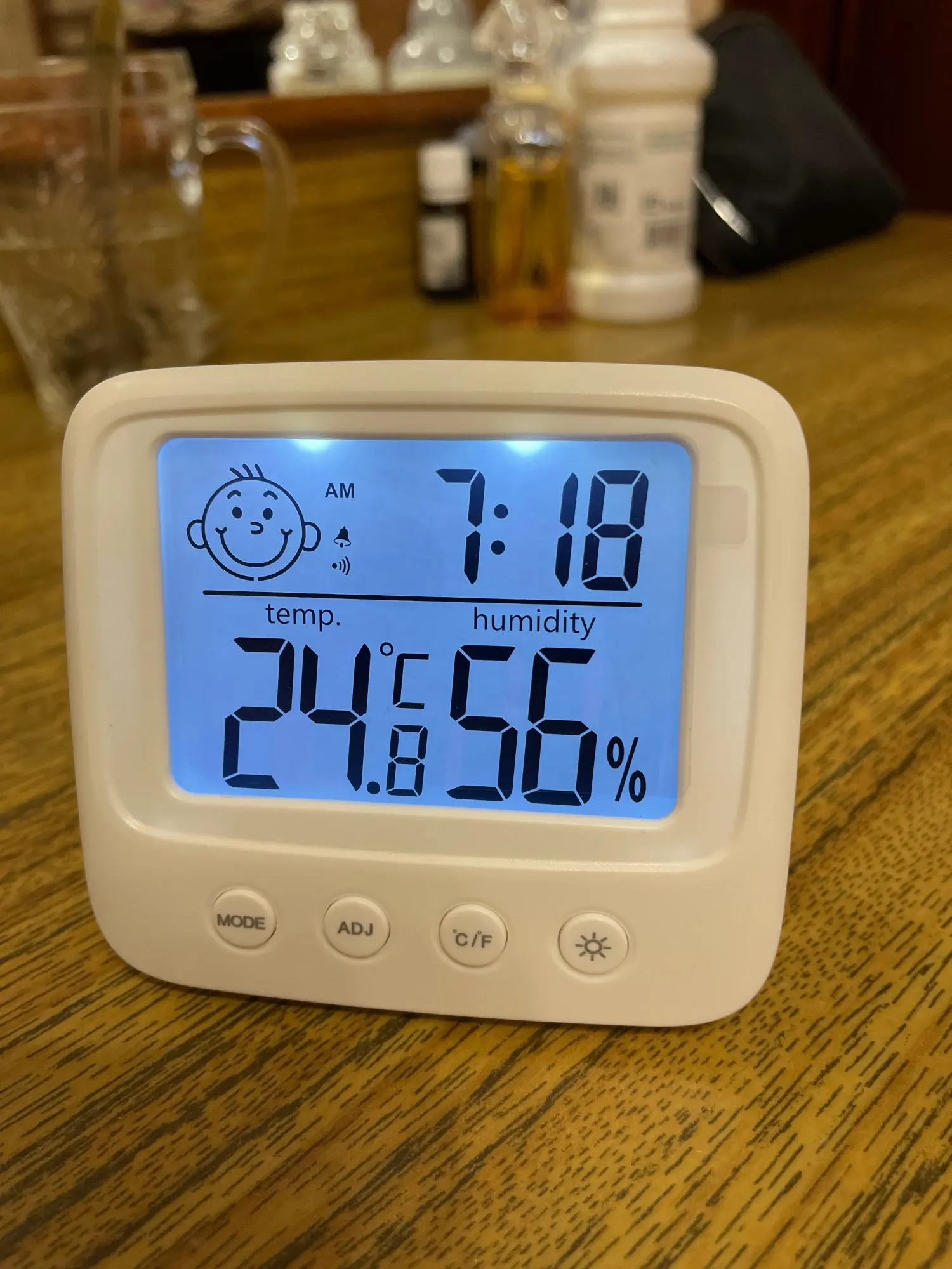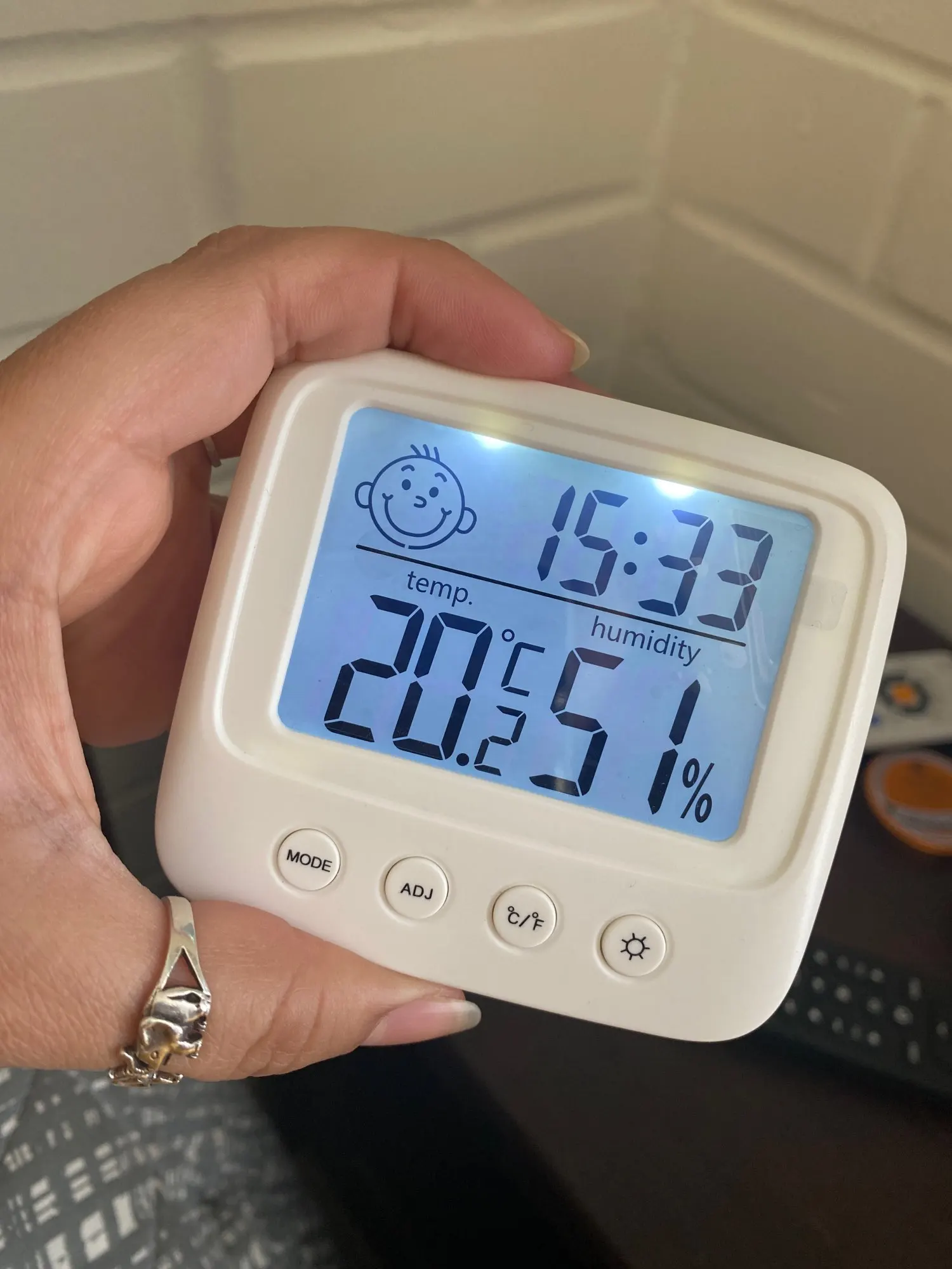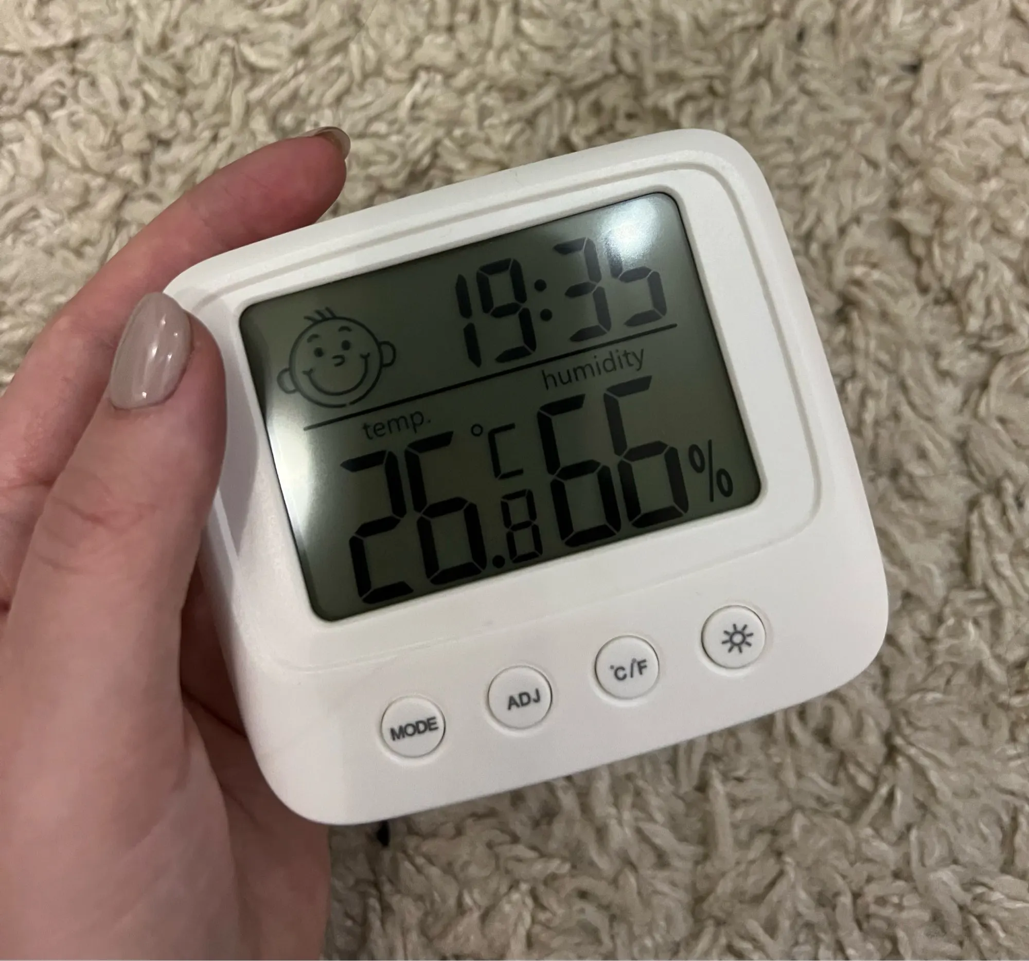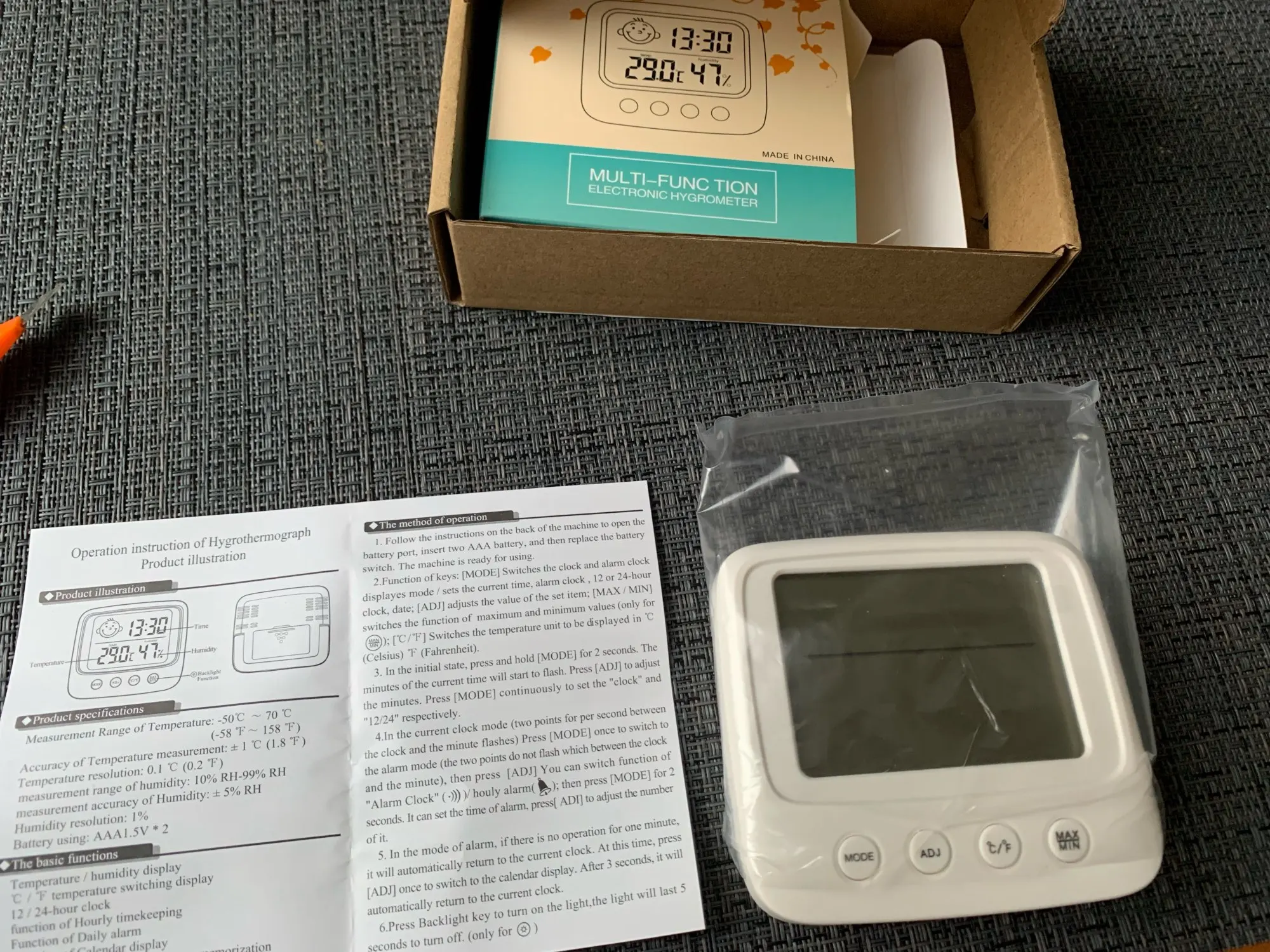 Один из лучших товаров, приобретенных мною за последнее время. Заказала 11.11, пришло 14.12. Упаковано в индивидуальную коробку, это огромный плюс. Давно искала себе устройство компактного размера, которое будет вмещать в себе время, температуру и влажность. Это очень удобное и легкое устройство, благодаря подставке сзади, его можно поставить на любую ровную поверхность в доме. Сделано из пластика, но выглядит отлично. Я взяла вариант с подсветкой: ночью эта подсветка отлично работает, видно все супер. Очень компактный, много места не занимает. Температуру измеряет +/- правильно, так же и влажность. Очень нужная вещь. Единственный весомый минус: к сожалению, в инструкции недостаточно понятно описано как настроить время (инструкция на английском и китайском языке). Мне пришлось долго разбираться, но в конечном счете, мне все таки удалось настроить устройство. За такие деньги определенно стоит брать.