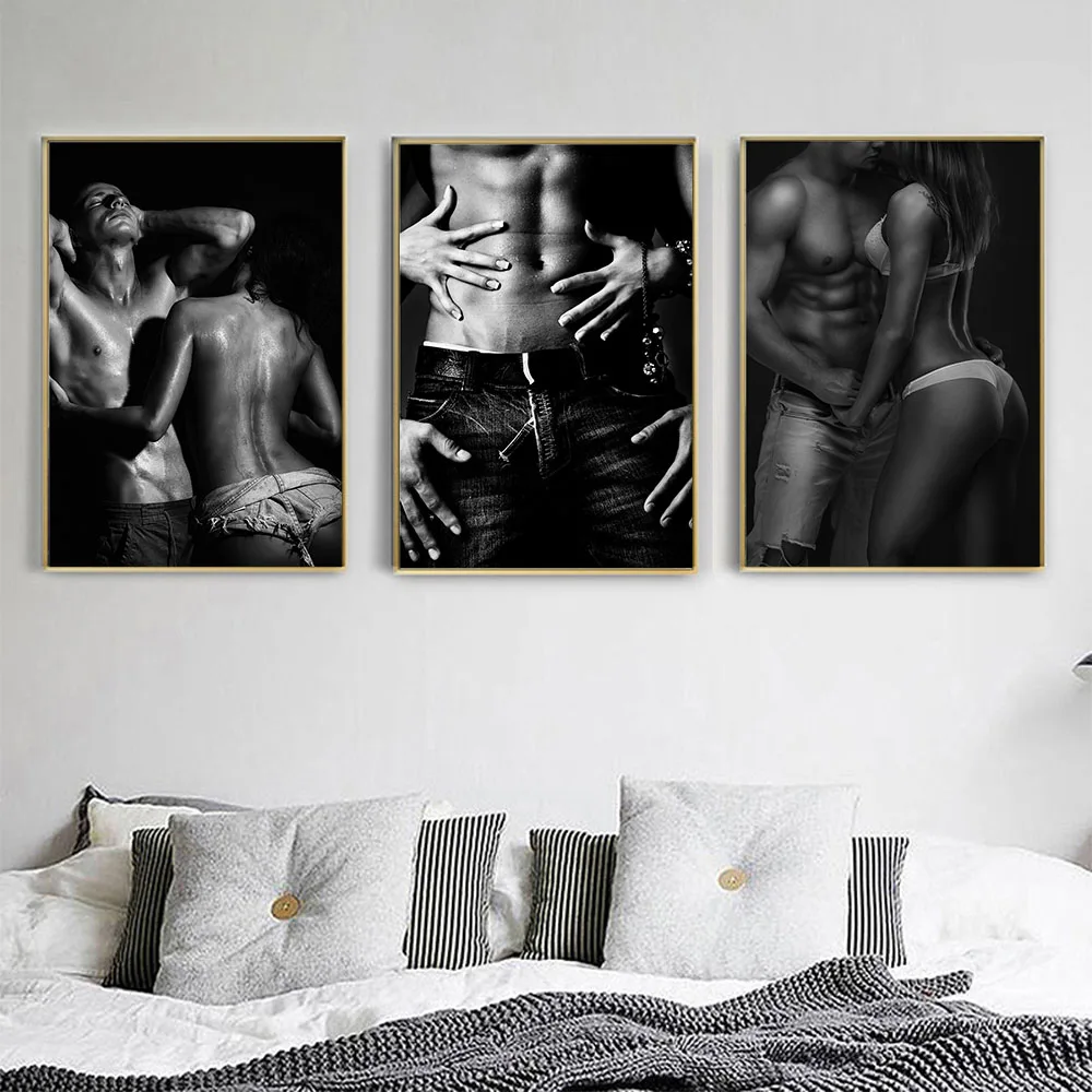 Привлекательные мужчины и женщины, черно-белый холст, абстрактный постер, спальня, прикроватная стена, искусство, декоративные холсты, картины