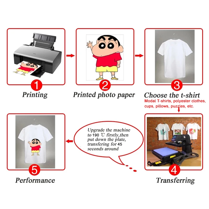 1. Сублимационная бумага должна быть сублимационной краской вместе. 2. Сублимационная бумага требует высокой температуры и давления. А не лрон. 3. Белая сторона-это размер печати. При печати выберите зеркальное изображение и Высококачественный вариант бумаги. 4. Сублимационная бумага не может напечатать ткань из чистого хлопка, за исключением чистого хлопка Материал, такой как полиэстер, нейлон, холст, модель и т. д., можно напечатать напрямую. 5. За исключением ткани, все другие продукты, такие как кружки, бутылки, очки и т. Д., должны быть сублимированы. 6. Температура печати ткани: 190 градусов по Цельсию, 45 секунд.