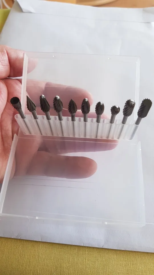 прикольные фрезы. пока ещё не придумал, что им буду делать, но на вид внушают доверие. подошли к китайской гравировочной машинке...дерево хорошо пилят.. единственный минус наверно: не хватает тонкой длиной фрезы.. расшарошивать отверстия..