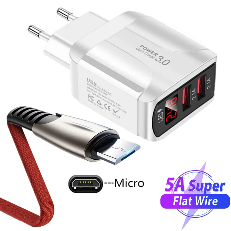 Кабель Micro USB 3A, быстрая зарядка QC 3,0, автомобильное зарядное...