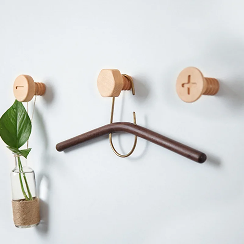 Деревянный крючок для одежды, крючок для пальто, винтовой дизайн, деревянная вешалка для ключей из бука, настенная подвесная вешалка для ключей, нордическая домашняя вешалка для пальто