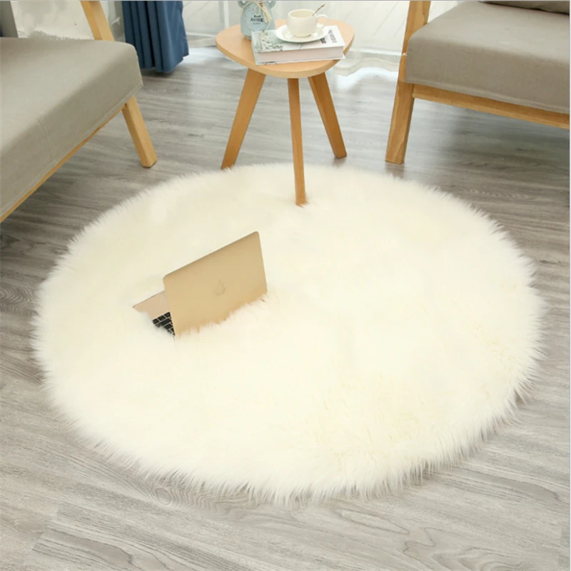 Круглый ковер из искусственной шерсти, белый плюшевый ковер на заказ, коврик для гостиной, спальни, можно подгонять