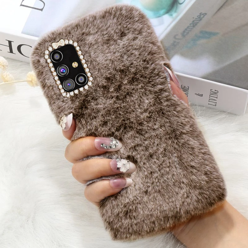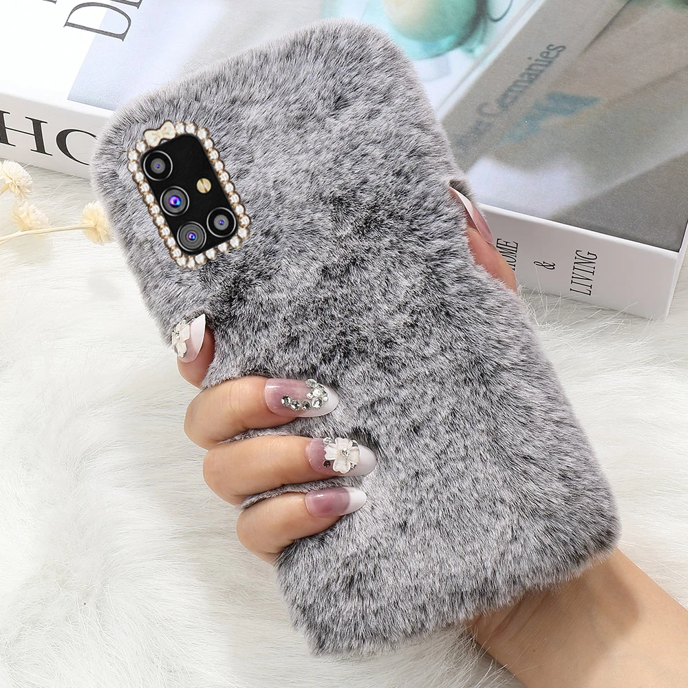 Чехол для SamSung M31S модный плюшевый кролик зимний сохраняющий тепло чехол для телефона для SamSung M31S M 31S Блестящий силиконовый чехол со стразами