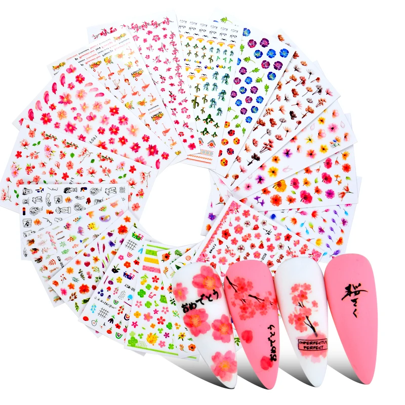 1 шт. новый дизайн Водные Наклейки для ногтей и наклейки Цветы Лист...