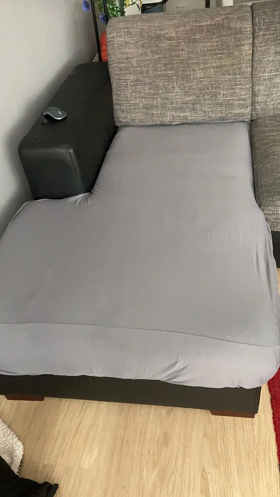 Честно говоря, я думал, что материал будет плотнее, чем он есть. После того, как чехол наденет на диван, так как он подтягивается, материал выглядит прозрачным. Из-за этого я должен купить бросок, чтобы положить его на крышку дивана.