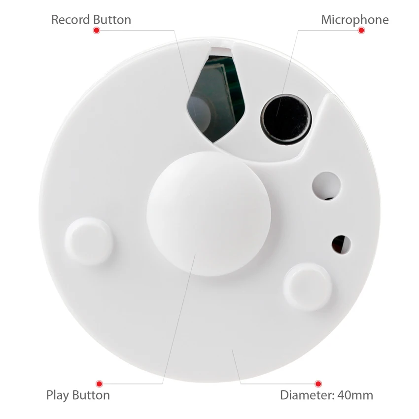 30 секунд диктофон-Записывает до 30 секунд настраиваемого аудио, легко перезаписывает ваше сообщение столько раз, сколько захотите. Ваше сообщение сохраняется, даже если батареи истощены или заменены.