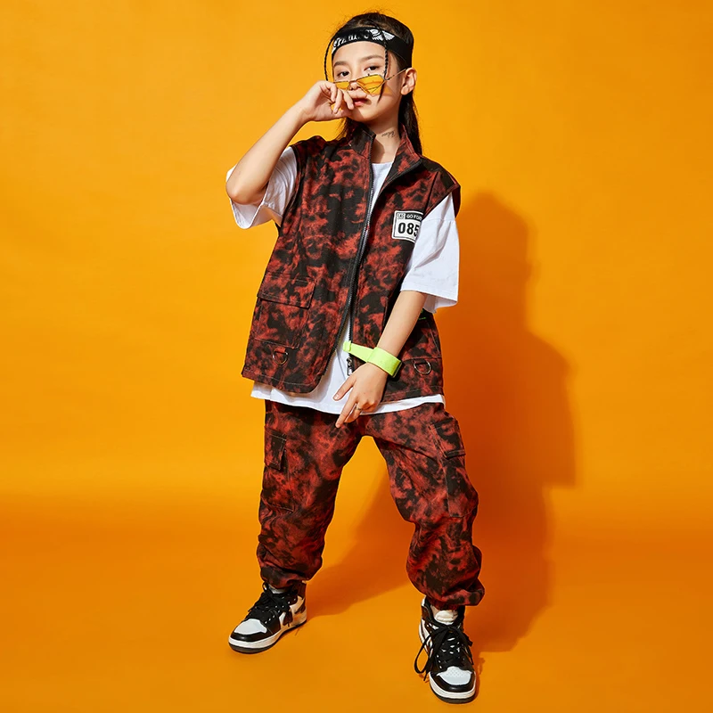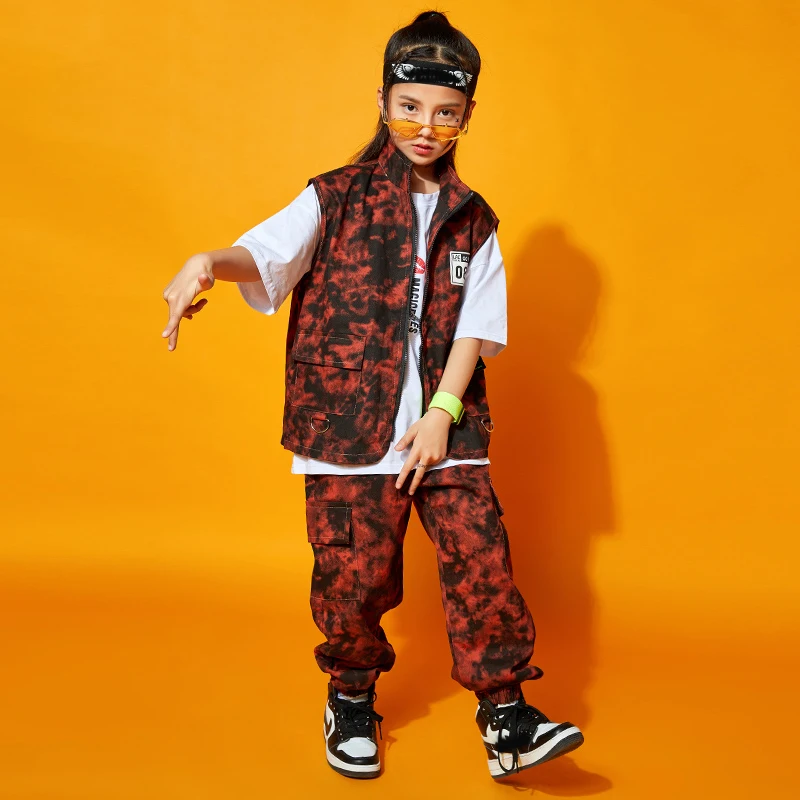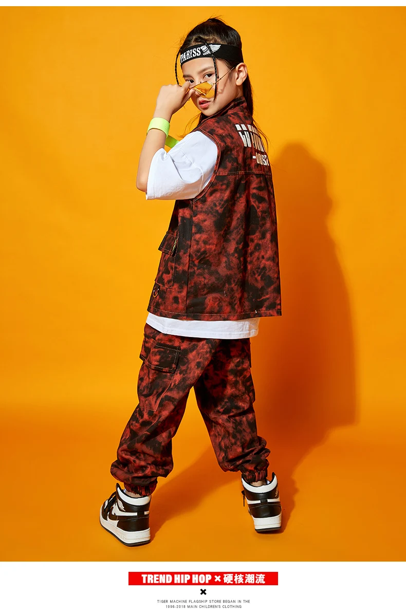 Для детей в стиле хип-хоп одежда для джазовых танцев; Костюмы для девочек; Туфли для подиума свободные праздничный костюм с жилетом в стиле джаз уличный сценическая танцевальная одежда наряды DN8347