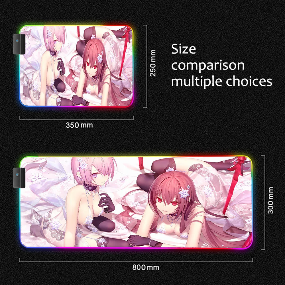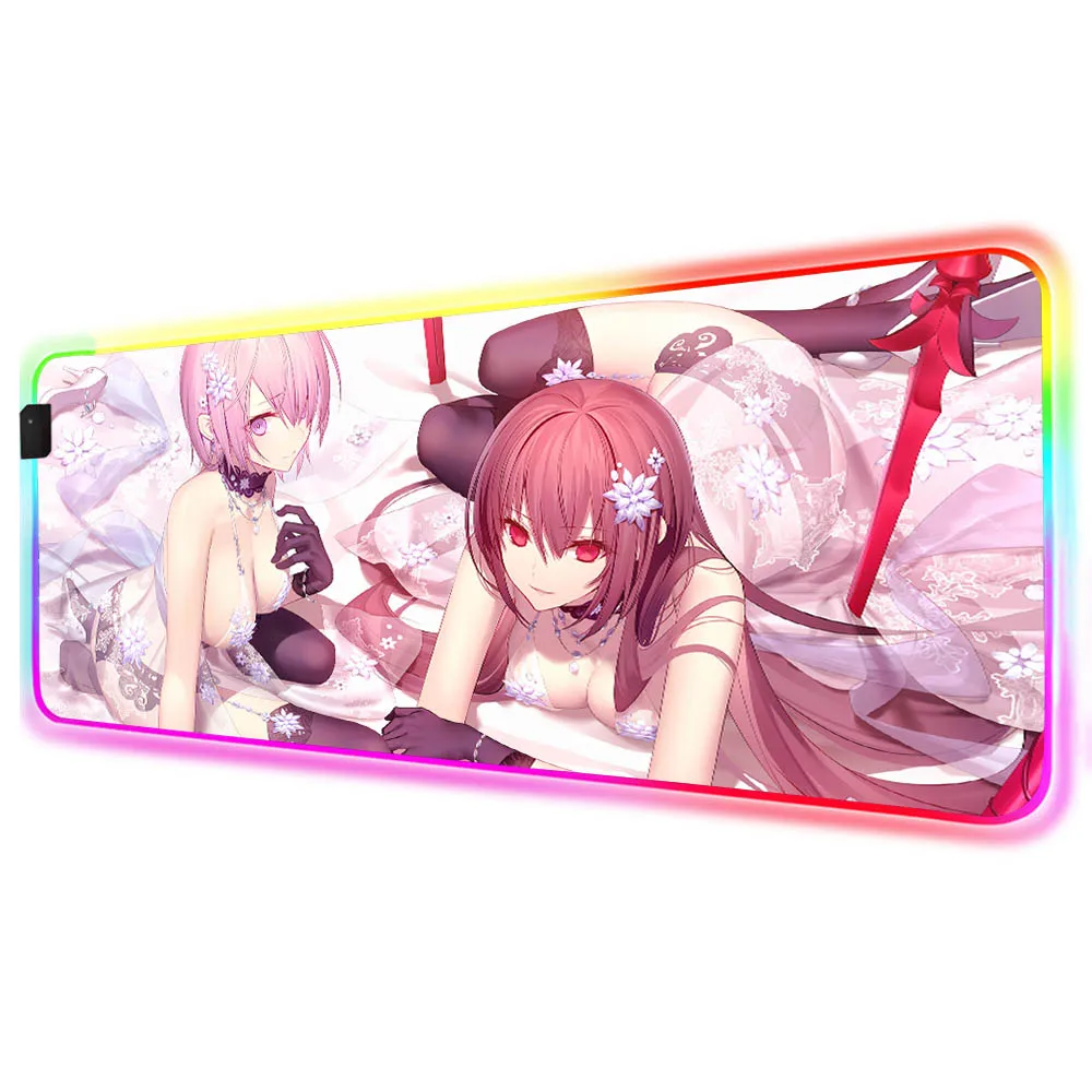 Rem Re Zero Аниме Сексуальная девушка RGB игровой коврик для мыши большой компьютерный коврик для мыши геймерский коврик для мыши со светодиодный Ной подсветкой коврик для мыши Коврик для клавиатуры Настольный коврик XXL