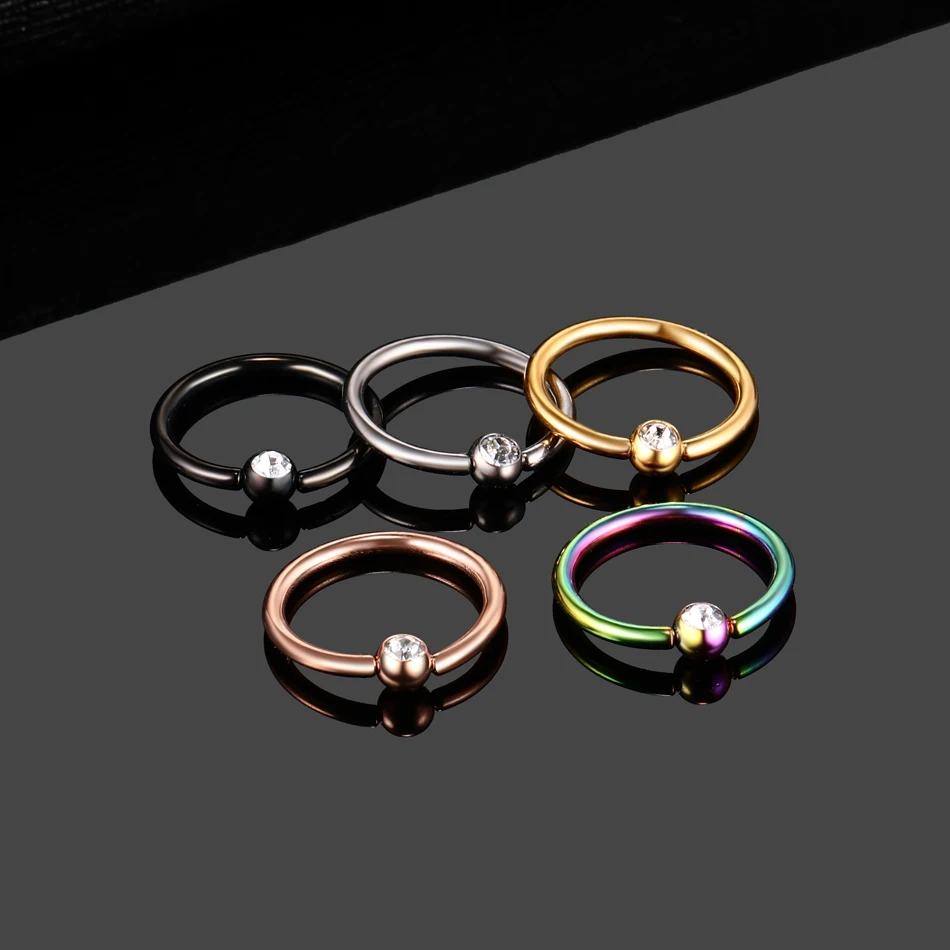 Кольца в нос из титана, круглые и плоские кольца с кристаллами для ...