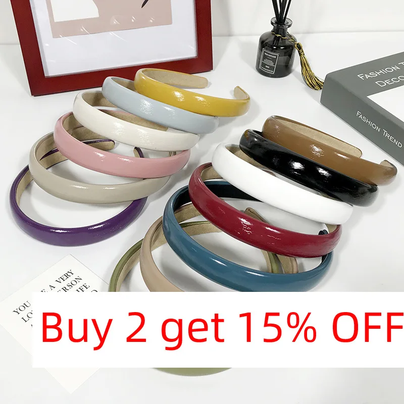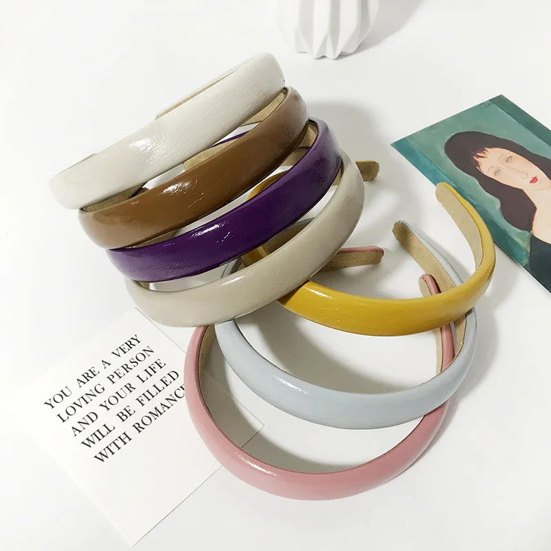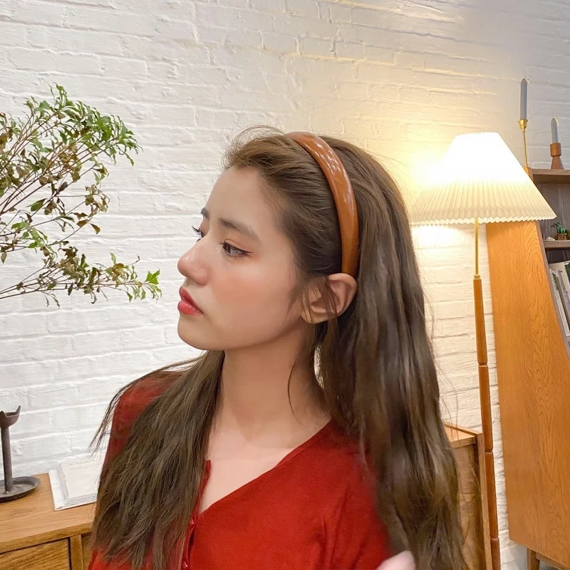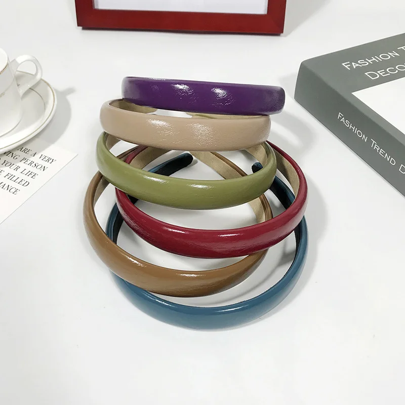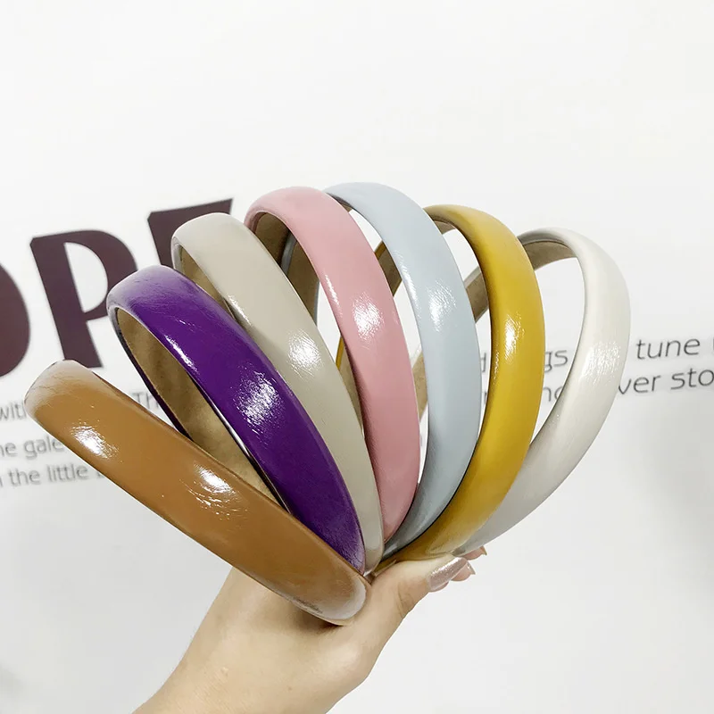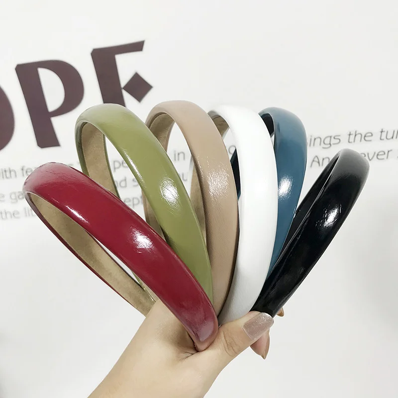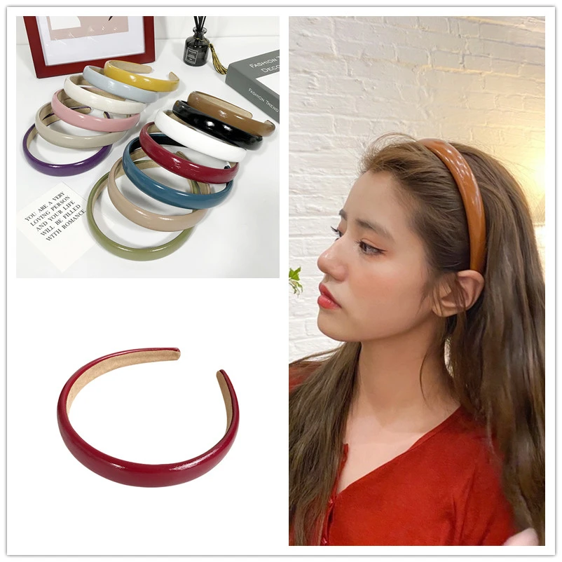 Женская однотонная повязка для волос ярких цветов из искусственной кожи, Корейская универсальная заколка для волос 2020, Новое поступление