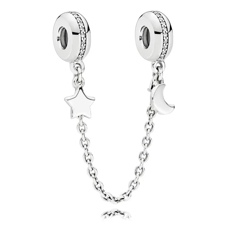 Бусины-цепочки с кристаллами циркония в форме звезды и сердца для девочек и женщин, ювелирные изделия Подходит для оригинального браслета с подвесками, аксессуары для браслетов, подвеска сделай сам