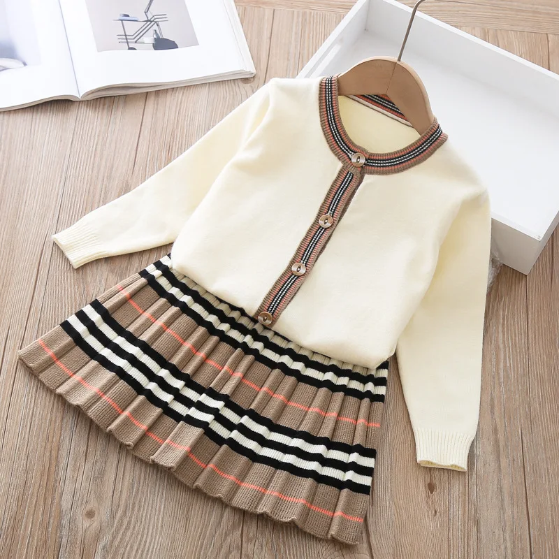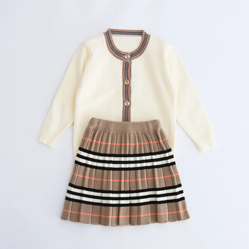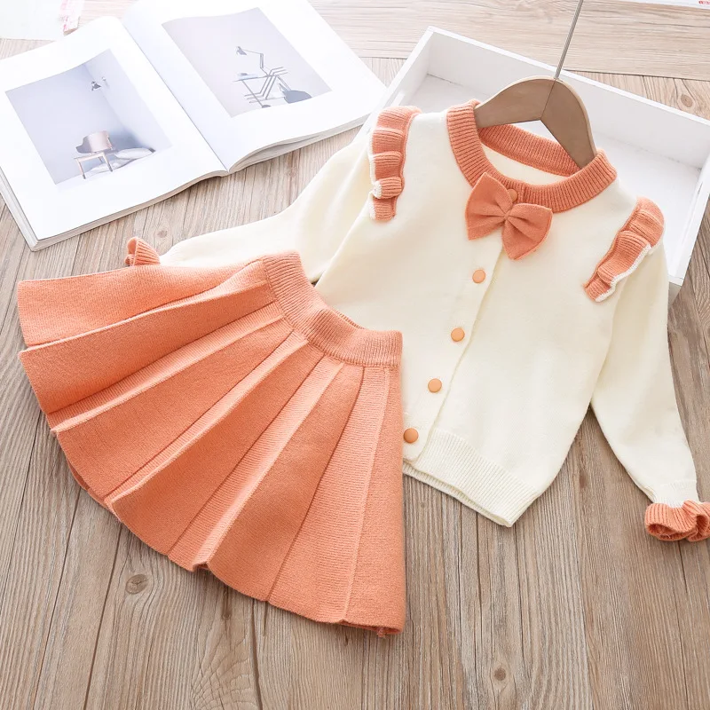 Осень 2022, Новое поступление, модный вязаный комплект из 2 предметов для девочек, свитер, пальто и юбка, модный наряд для девочек, зимняя одежда для маленьких девочек