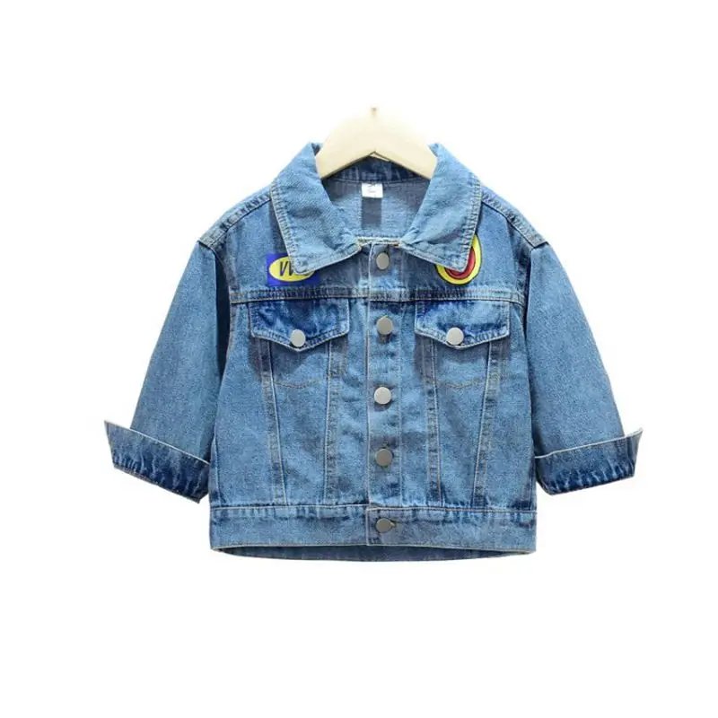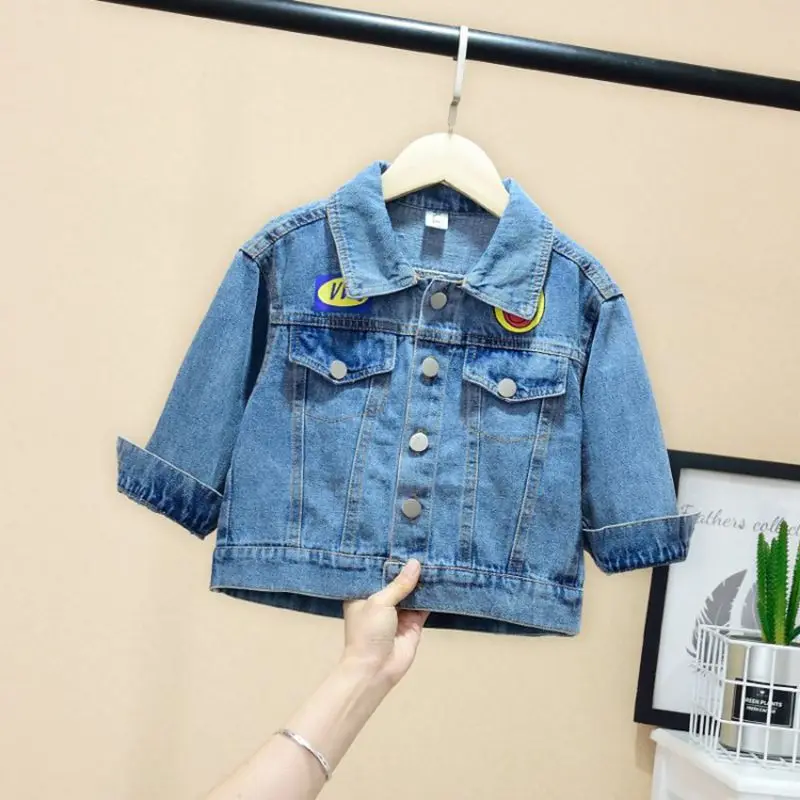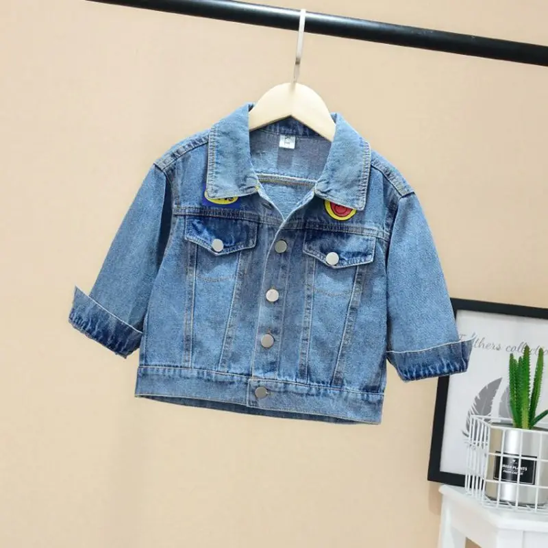 Детская джинсовая куртка с длинным рукавом, с мультяшным принтом