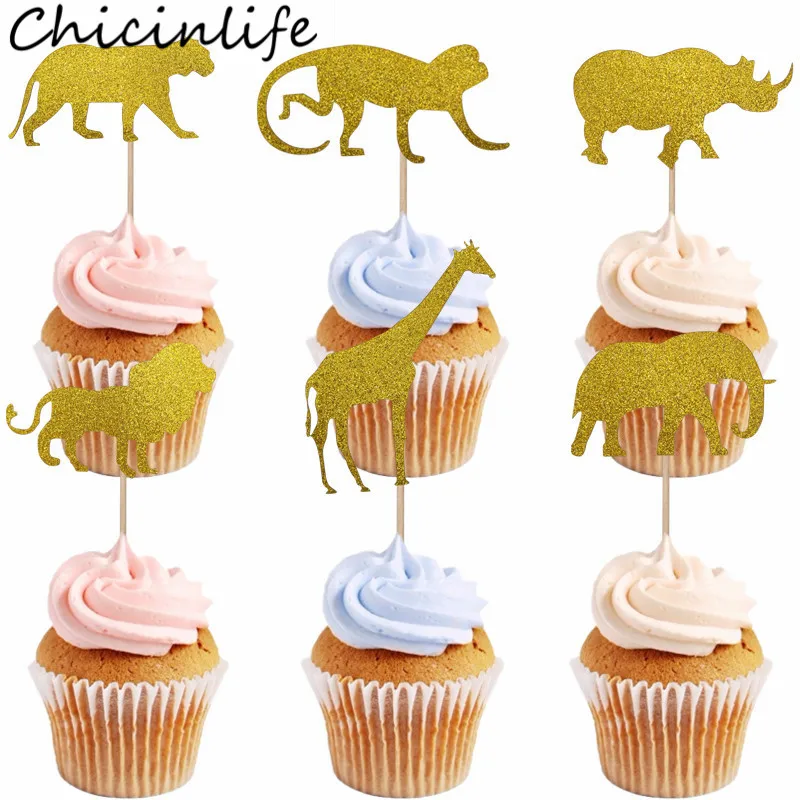 Chicinlife топперы для капкейков с животными леопардом обезьяной львом детское украшение на день рождения вечеринку сафари джунгли товары для вечеринок