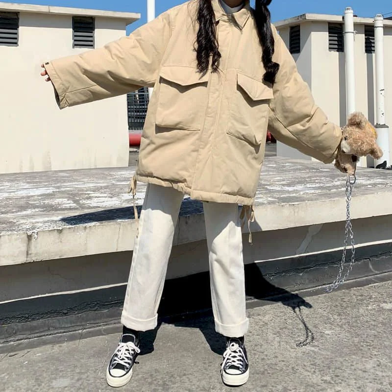 Однотонная хлопковая куртка, женская одежда, зима 2021, корейская м...