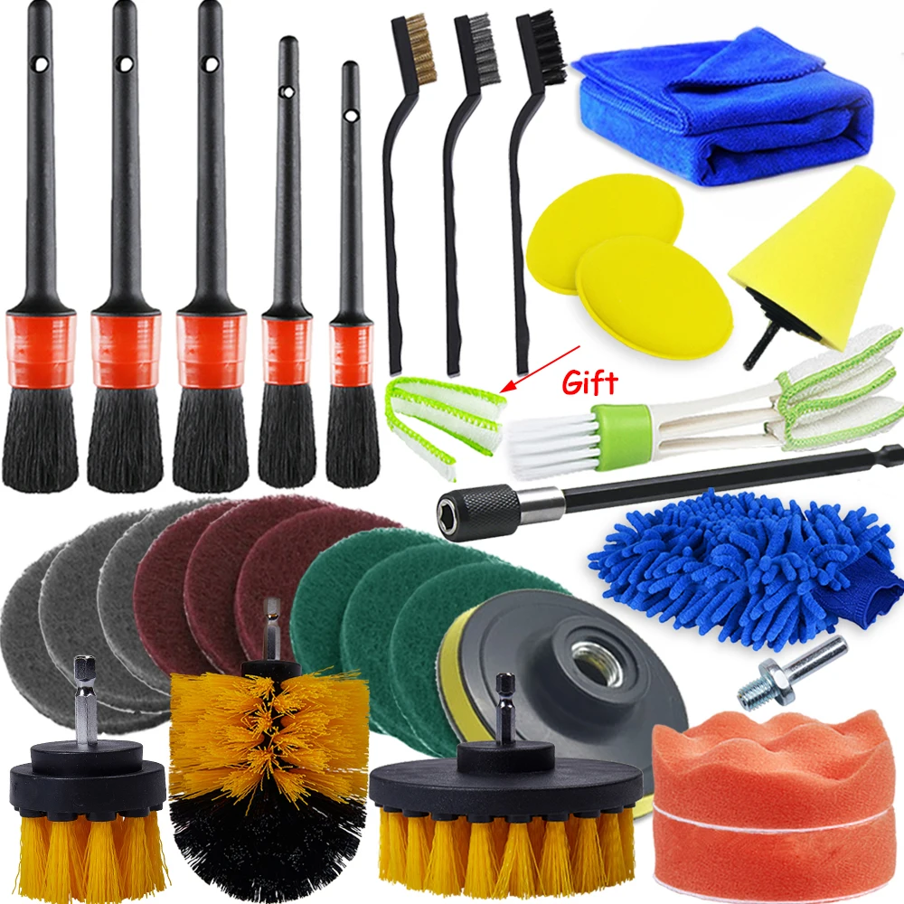 Щетка для детирования автомобиля, щетка для дрели, набор щетки для автомобильных вентиляционных отверстий, обода колеса, пена для полировки автомобиля, щетка для чистки автомобиля