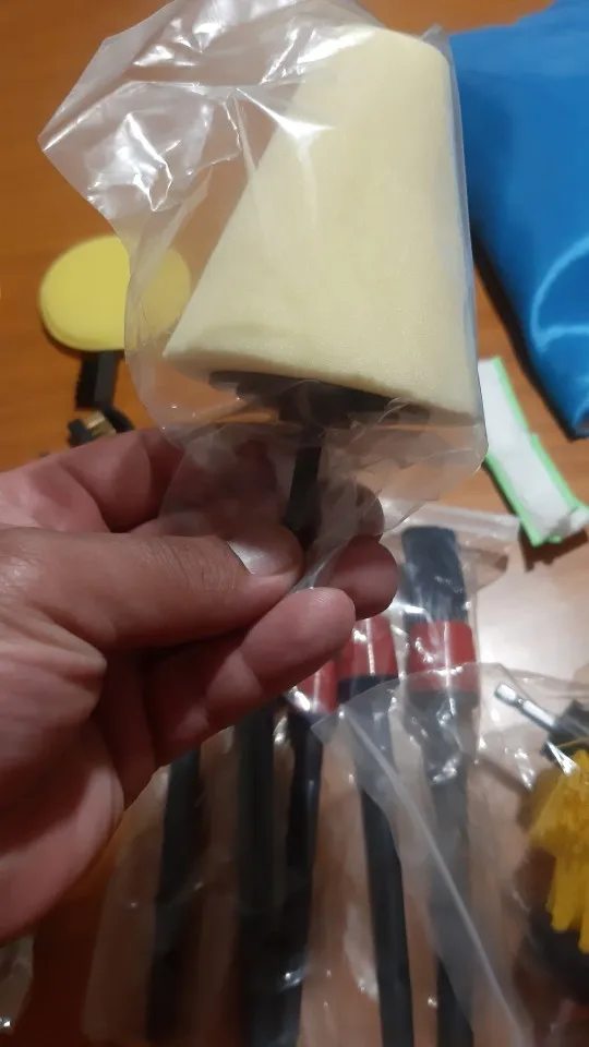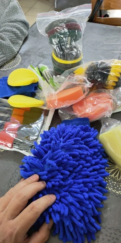 Некоторые детали очень плохого качества, такие как полотенце и губки для полировки, но по цене всего комплекта они могут быть рассмотрены как дополнительные