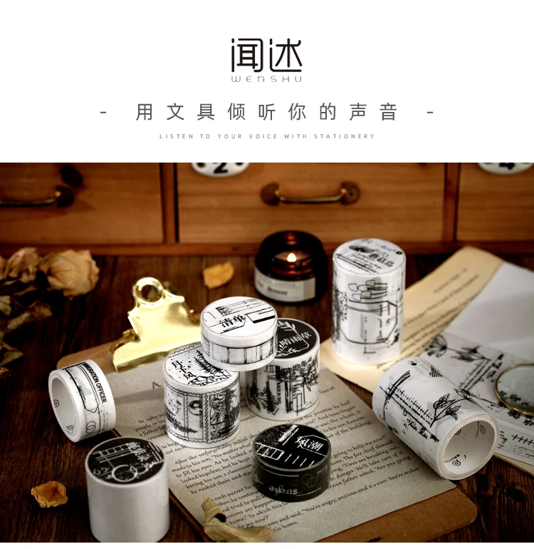 1 шт.1 партия декоративные клейкие ленты в стиле ретро черно-белые художественные декоративные бумажные японские наклейки для скрапбукинга сделай сам 3 м