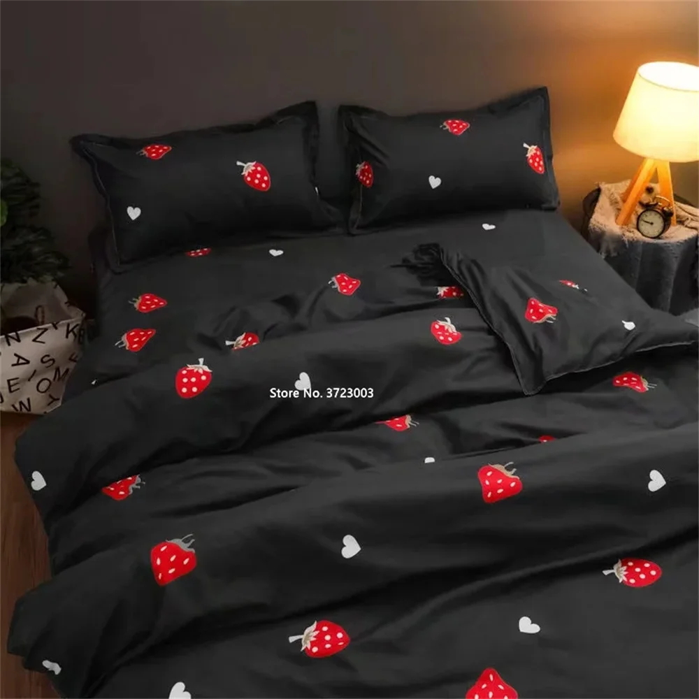 Комплект постельного белья в полоску с принтом клубники, пододеяльн...
