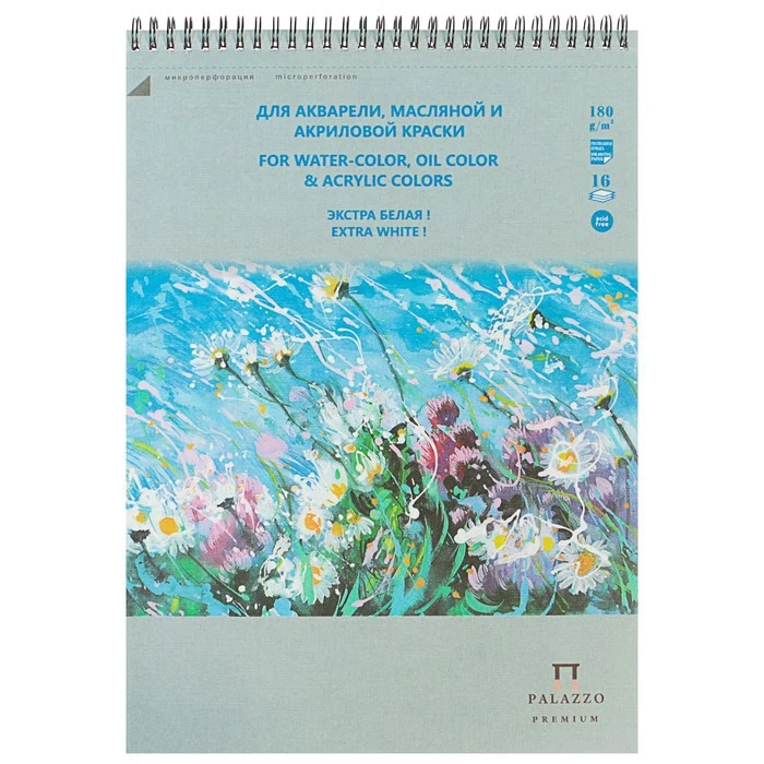 Альбом для акварели, масляной и акриловой краски В4, 16 листов на гребне «Русское поле», экстра белый блок, 180 г/м²