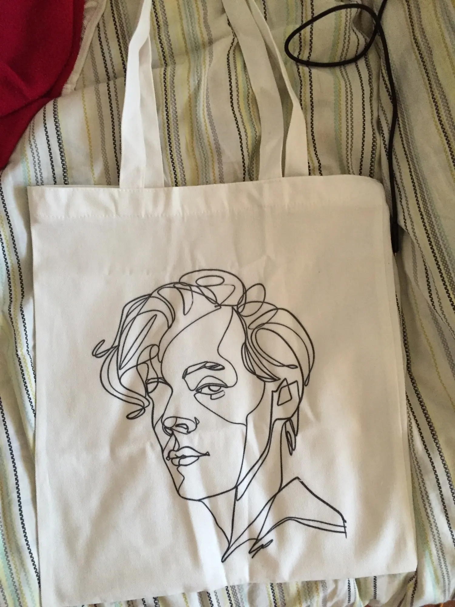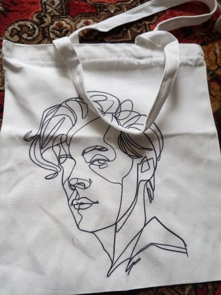 Красивая, хорошая и пухлая ткань. Единственная плохая вещь, хотя это уже было видно на фотографии, это то, что ручка справедлива, чтобы использовать его рулон плечевой сумки.