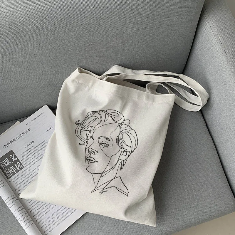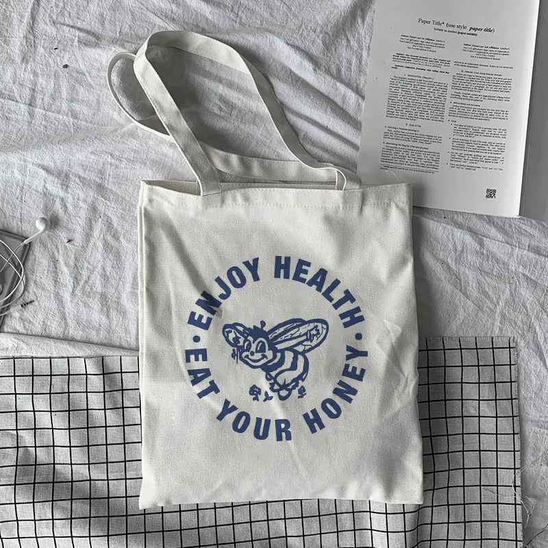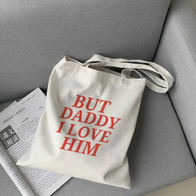 Холщовая женская сумка, с принтом в стиле Харадзюку, с надписью I LOVE HIM