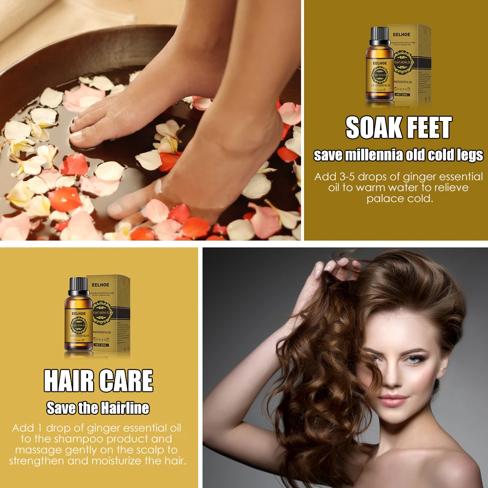 Натуральное имбирное масло 30 мл, лимфатическая дренажная терапия, антивозрастное растительное эфирное масло, стимулирующее метаболизм, массажные масла для полного похудения тела