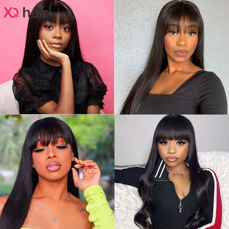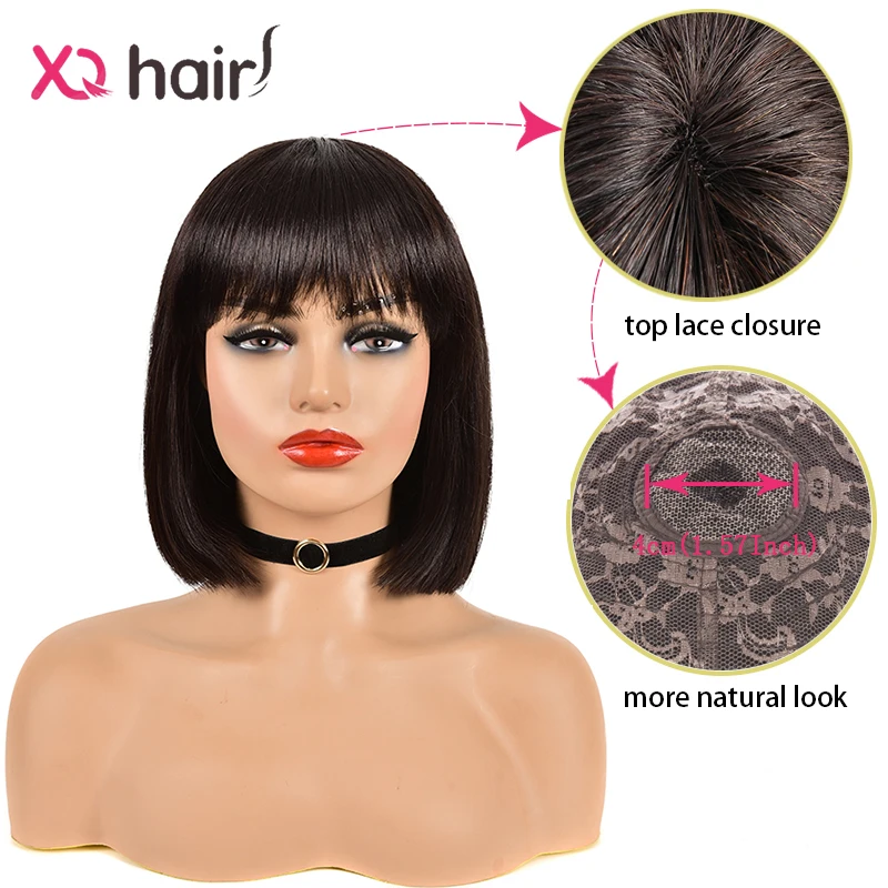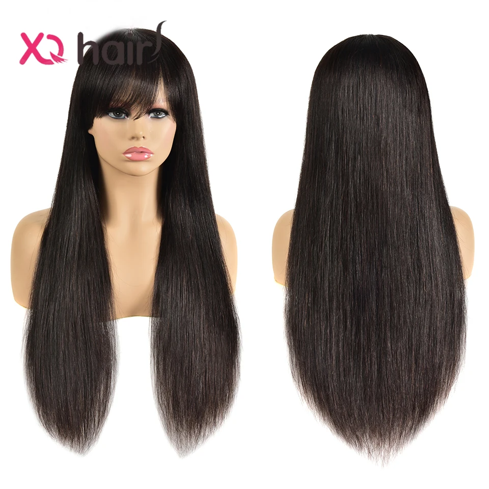 Парик XQ из малайзийских прямых человеческих волос с челкой, 100% натуральные волосы Remy, парик на шнуровке для чернокожих женщин, прямой парик Боб