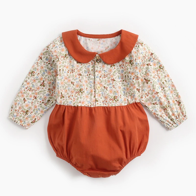 Menoeaкомбинезон для маленьких девочек; Модный весенний винтажный хлопковый боди принцессы с цветочным принтом для новорожденных; Детская одежда; Осенние детские Боди