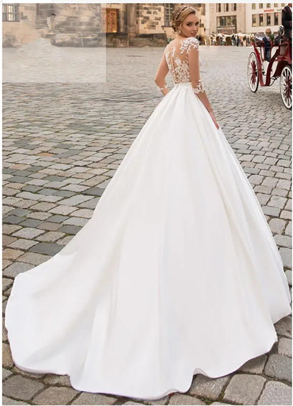 Платье свадебное атласное ТРАПЕЦИЕВИДНОЕ с длинными рукавами и карманами