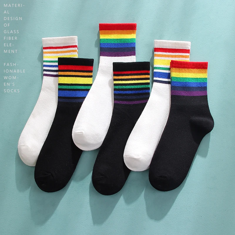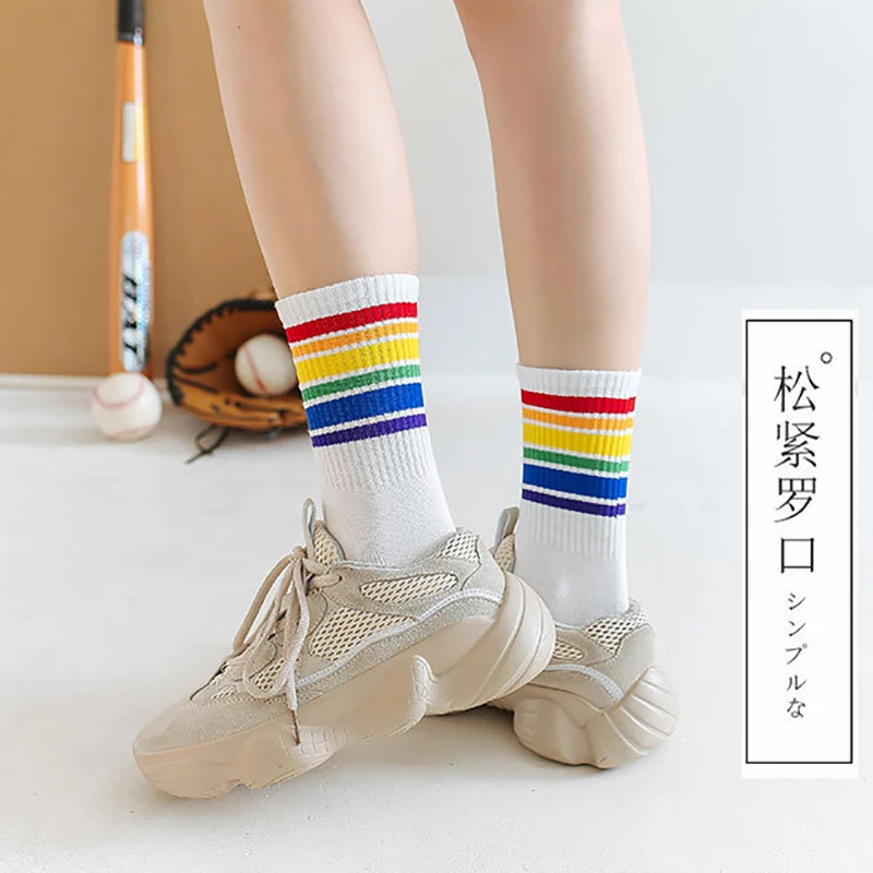 Длинные носки радужного цвета, уличная мода корейский Носок, Рождес...