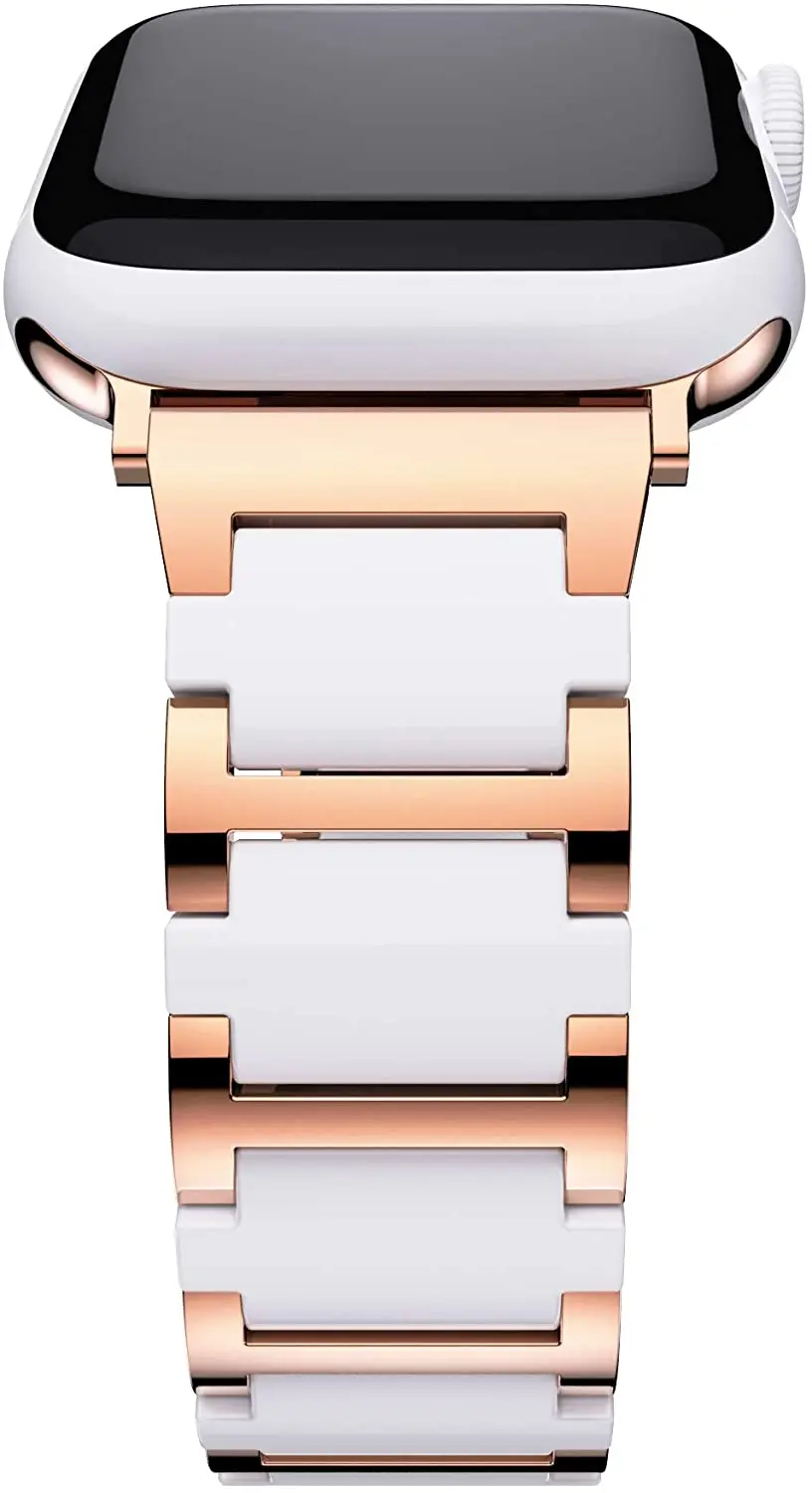Подходит для Apple watch серии 7/SE/6/5 нержавеющая сталь Керамика ремешок series41/45 мм/40 44 мм и 38, 42 мм, версия цвета розового золота белого и черного цвета