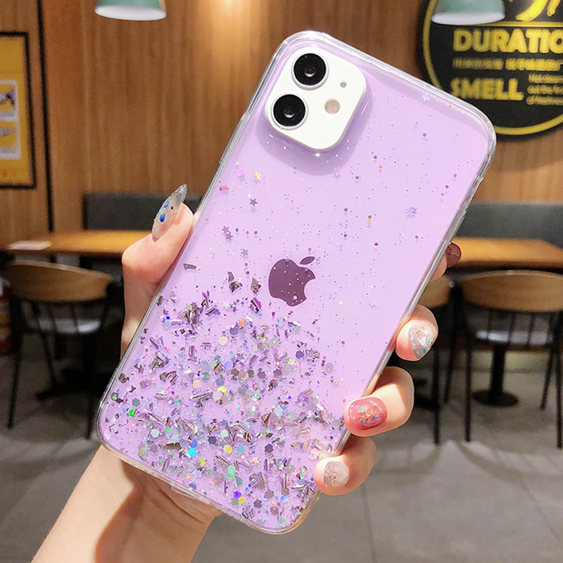 Чехол-накладка для iphone 12, 11 Pro Max, X, XR, XS, 6, 6S, 7, 8 Plus, SE 2, с блестками