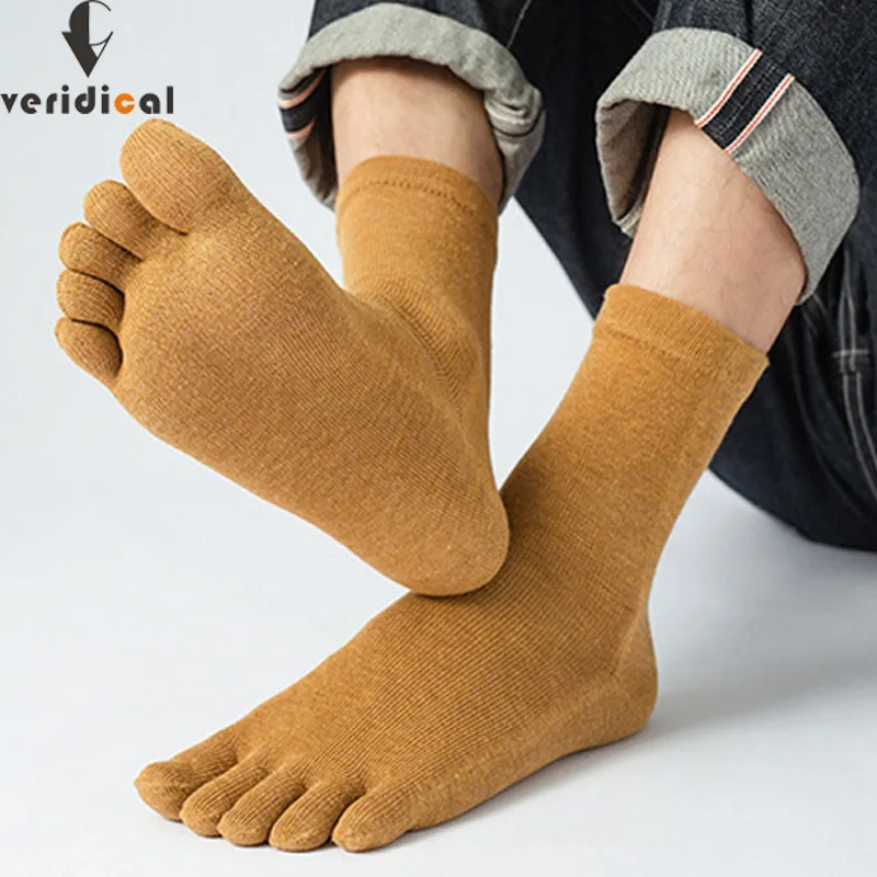 VERIDICAL мужские короткие носки с пятью пальцами хлопковые яркие цвета модные деловые Повседневные Дышащие счастливые носки с пальцами ЕС 38-44
