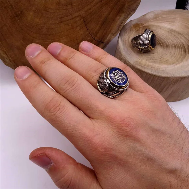 Мужское кольцо в мусульманском стиле, большое металлическое кольцо с мусульманским кольцом, аксессуар для вечерние, Размер 7-11, 2020