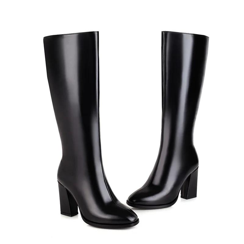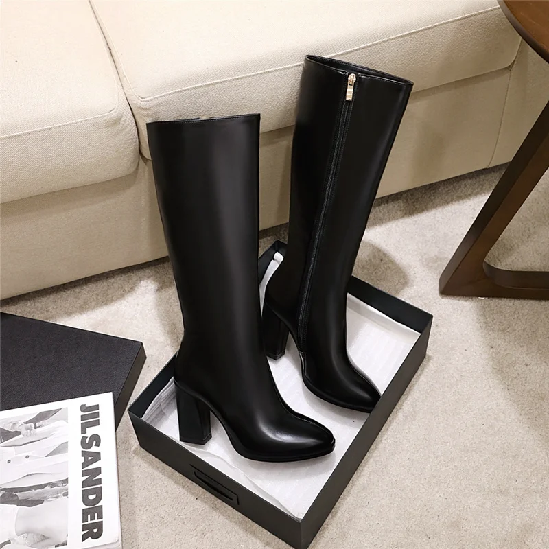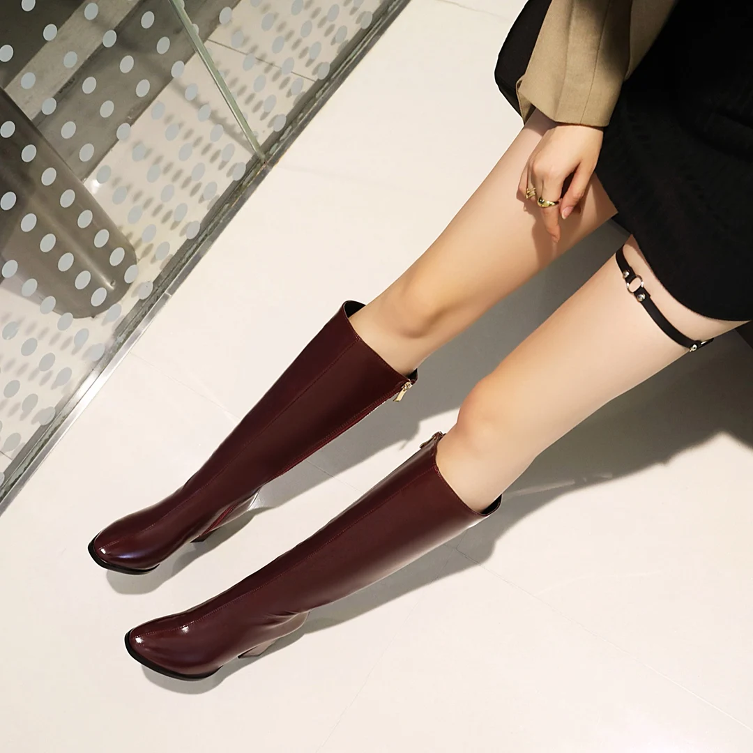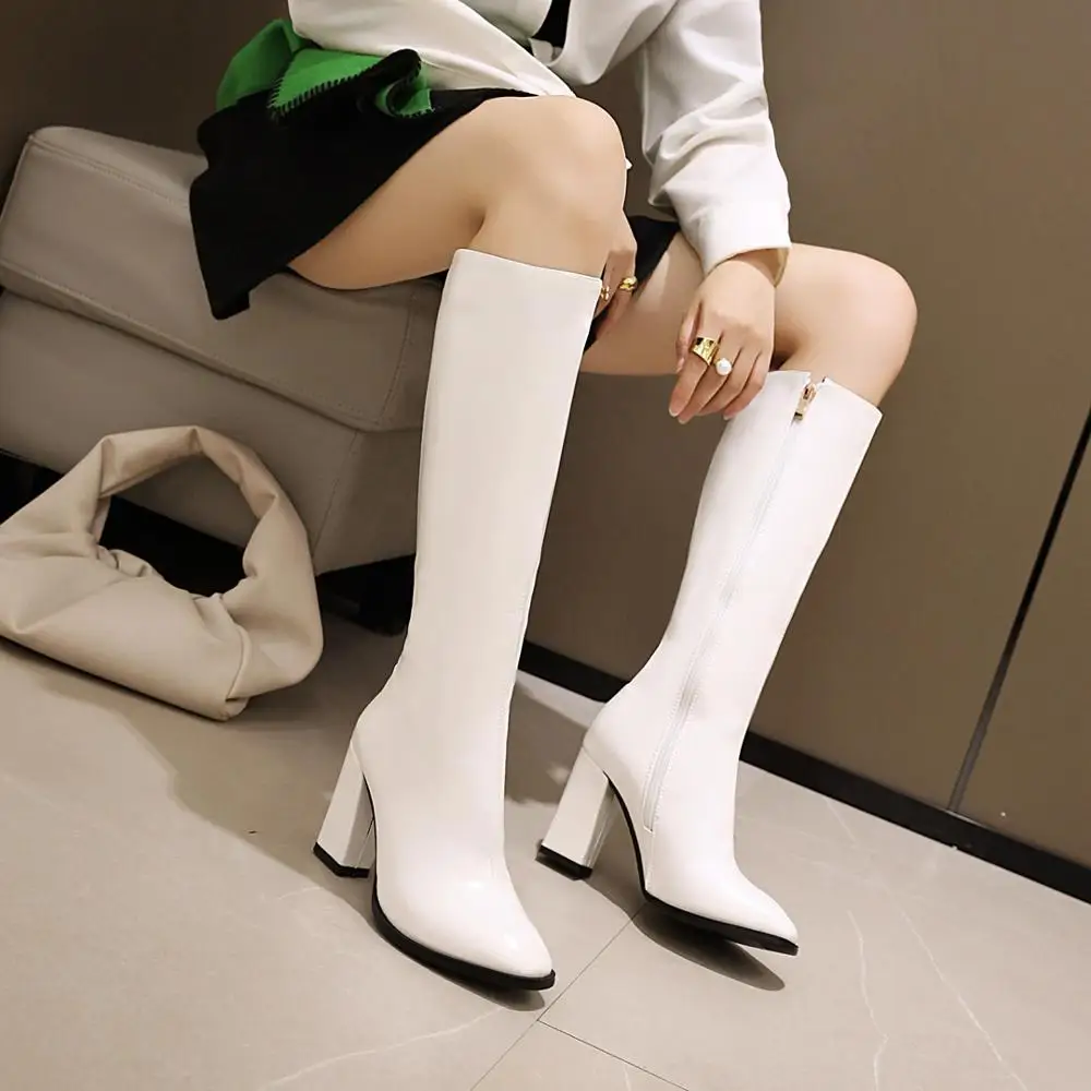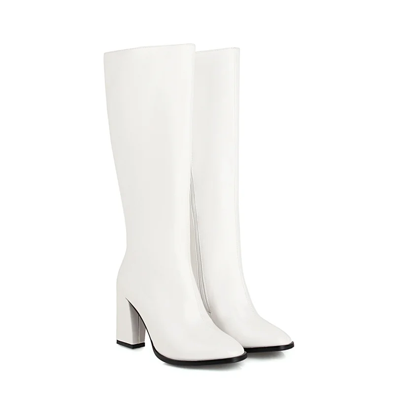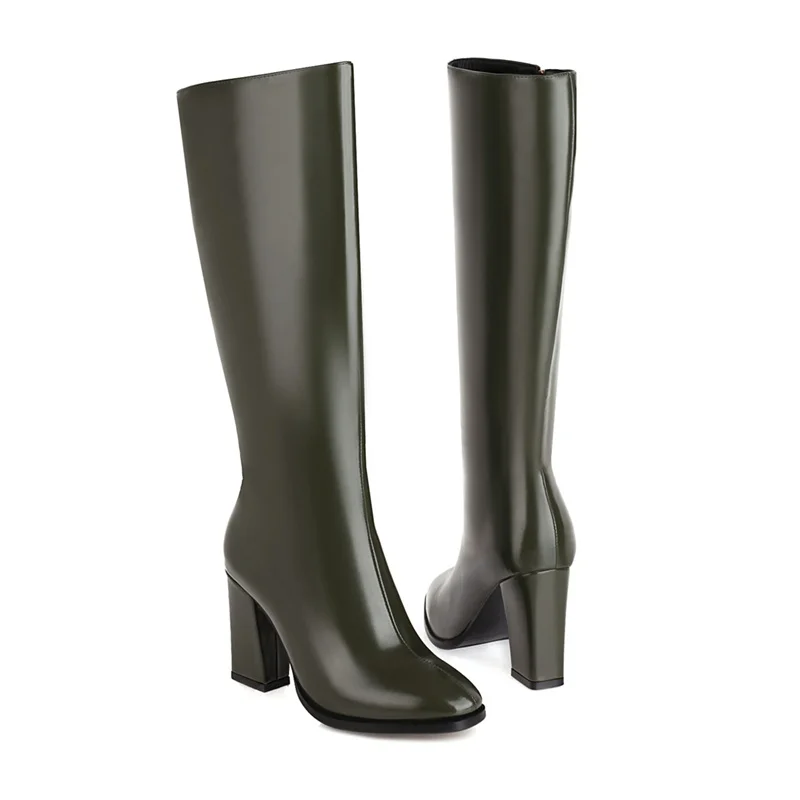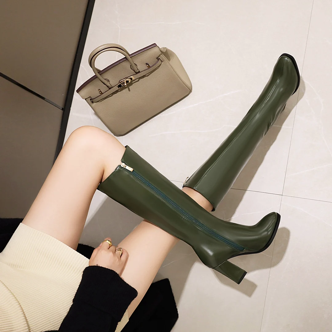 Модные сапоги до колена женская обувь 2021 г. Новые повседневные женские высокие сапоги на каблуке высокие сапоги зеленого, белого и черного цвета Большие размеры 46, 48