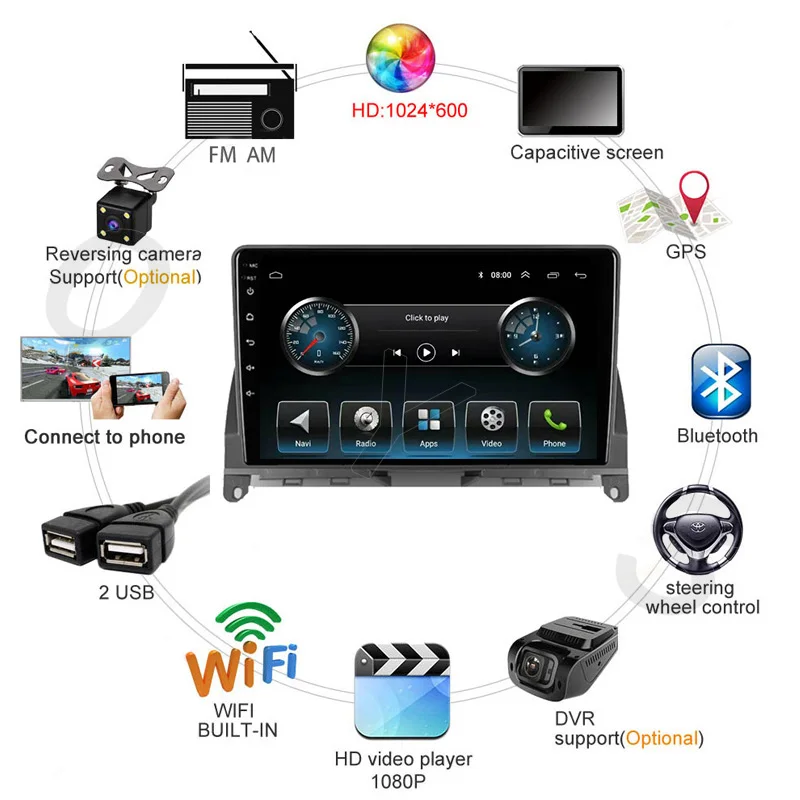 Цена для навигации, включая рамку, головное устройство (экран), жгут питания (подключи и работай).