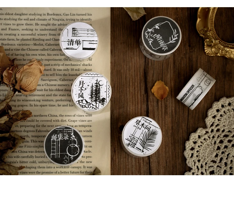 1 шт.1 партия декоративные клейкие ленты в стиле ретро черно-белые художественные декоративные бумажные японские наклейки для скрапбукинга сделай сам 3 м