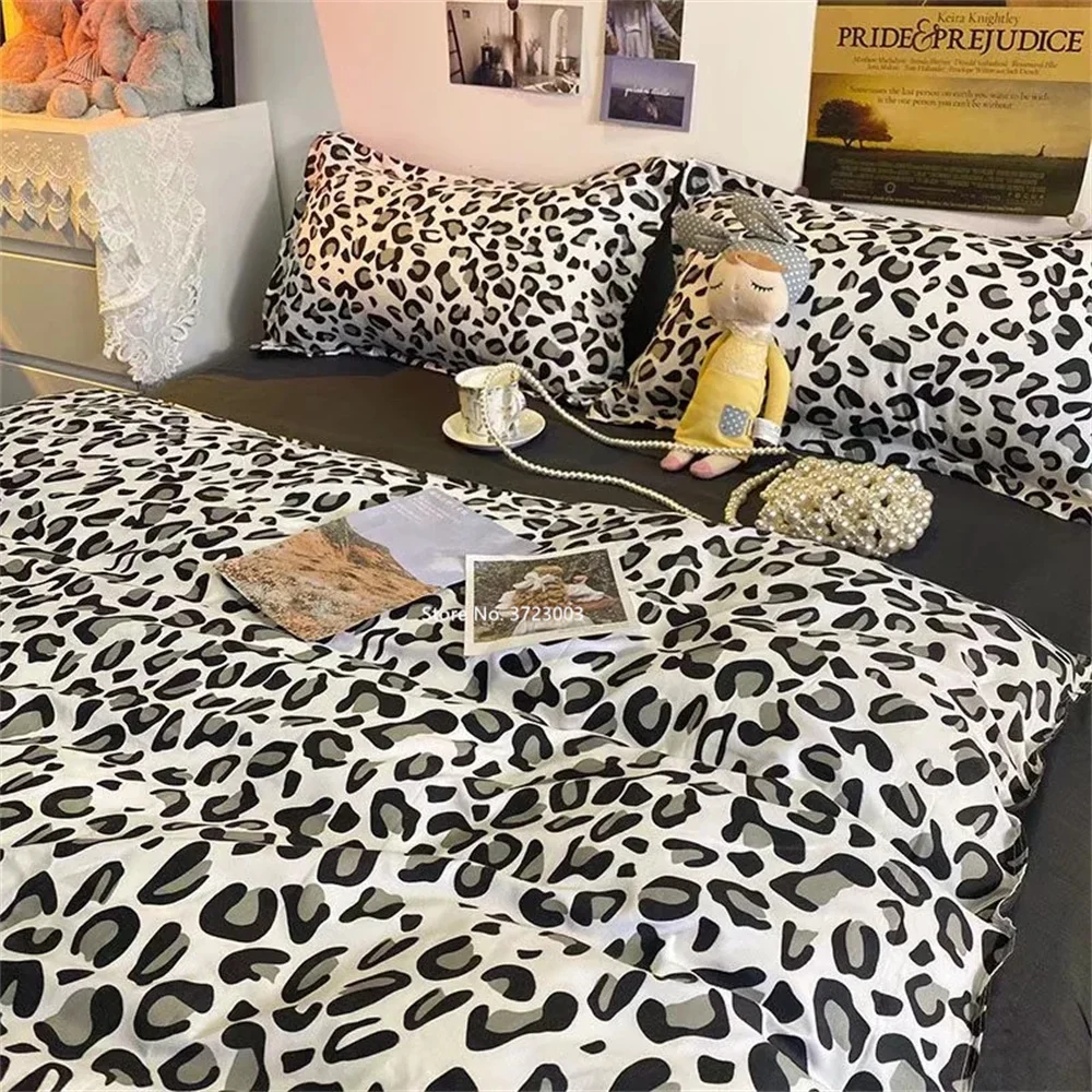 Комплект постельного белья с леопардовым принтом, 4 шт., для девочк...