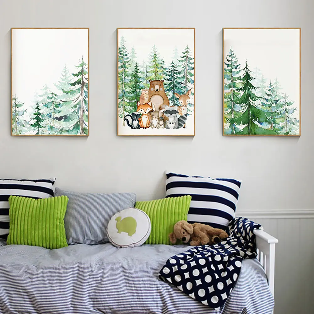 Настенный постер с изображением лесных животных, картины для детской комнаты, лиса, олень, медведь, Картина на холсте, настенные картины в скандинавском стиле для декора детской комнаты