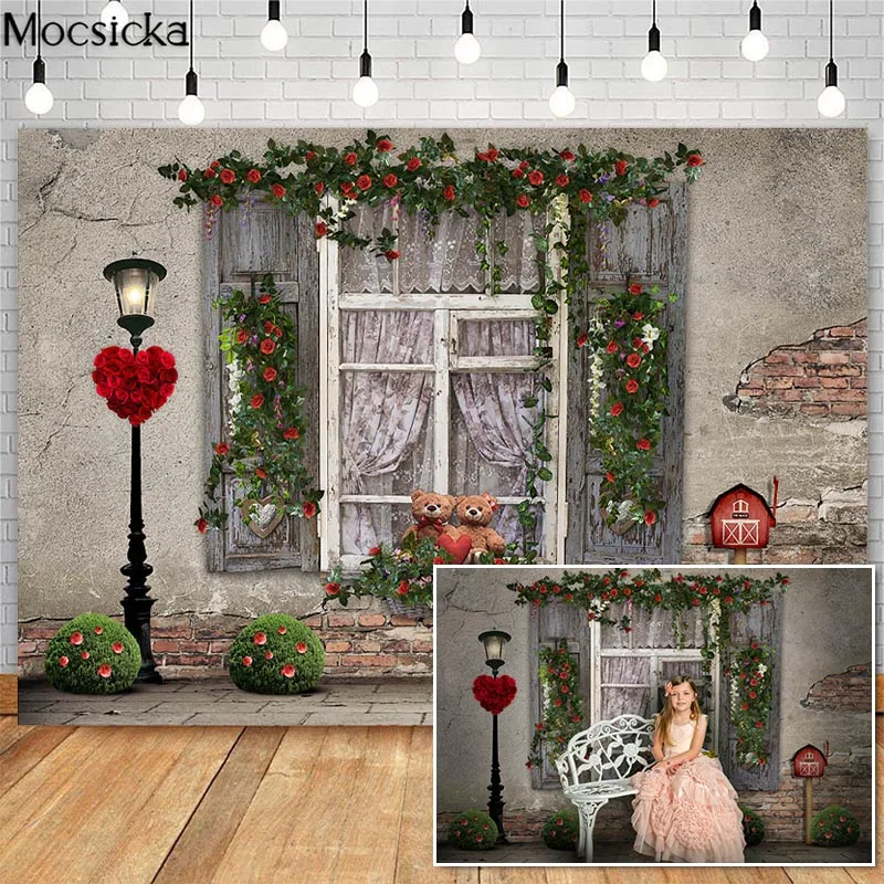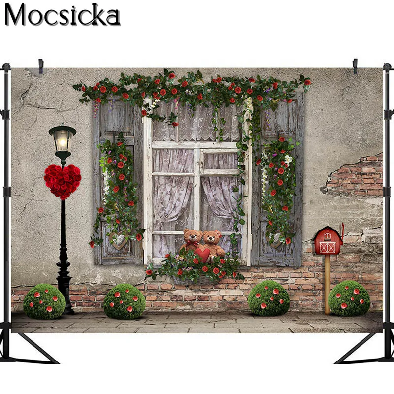 Mocsicka День Святого Валентина роза цветы фотографии фоны Весна садовые окна Медведь День рождения фото реквизит Студия Стенд фон