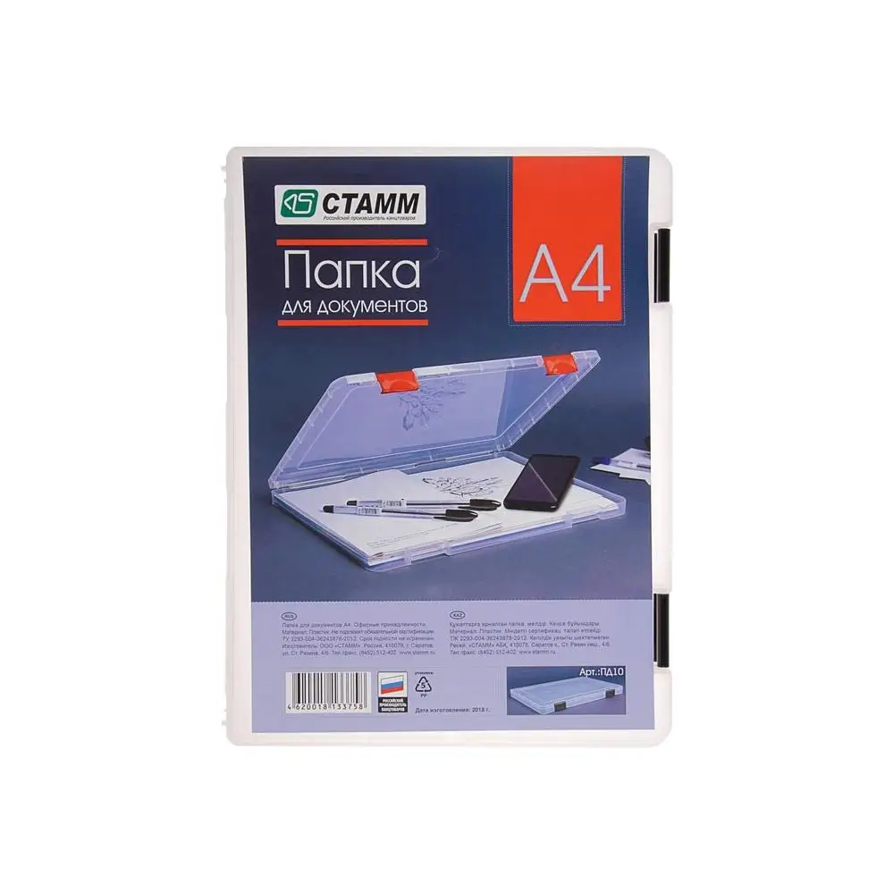 Папка для документов А4, с черными защелками, 230 х 305 х 23 мм, прозрачный