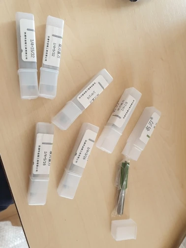 Фрезы как фрезы. Качество согласно ценнику, нужно высокое качество покупайте СМТ на порядок дороже. 3мм режет паз 3.2мм, 4мм режет паз 3.9мм (лучше бы как 3мм чуть больше - панель уже не встает в такой паз). Брал 3мм и 4мм дополнительно к комплекту, проверял только одну каждого размера. Пришли каждая в своей коробочке, упакованы хорошо.