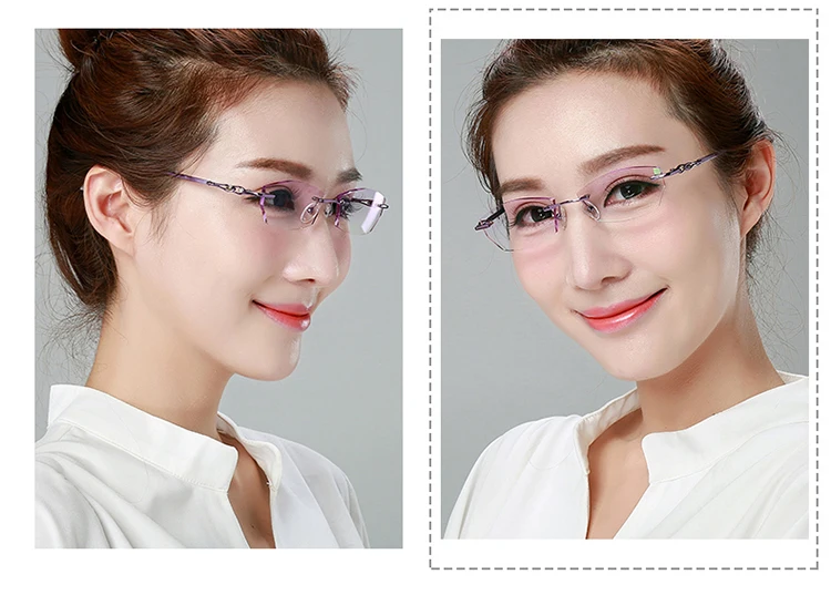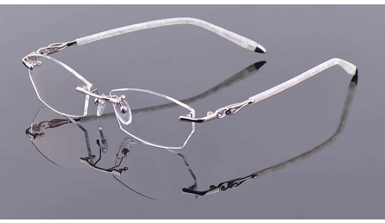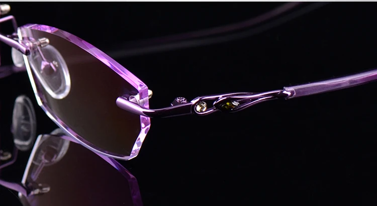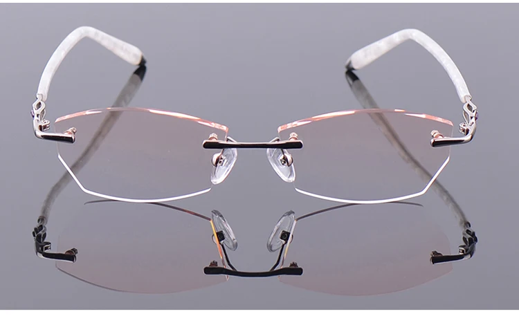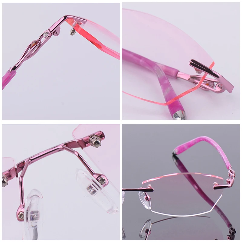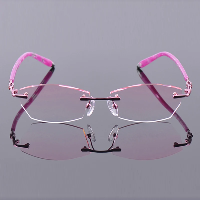 Антибликовыми свойствами светильник фильтр без оправы очки для близоруких, Для женщин розовый компьютерные очки с диоптриями близорукие очки без оправы очки Украшенные алмазами