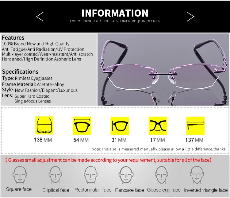 Frame DesignWomen Rimless Frame Glasses