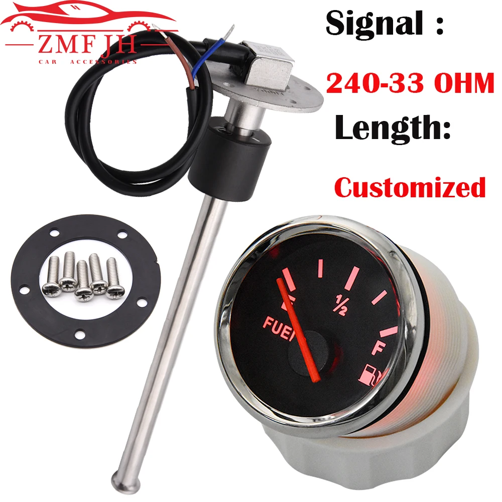 Датчик уровня топлива, из нержавеющей стали для лодки, 150-600 мм, 240-33 Ом с красной подсветкой 9-32 в