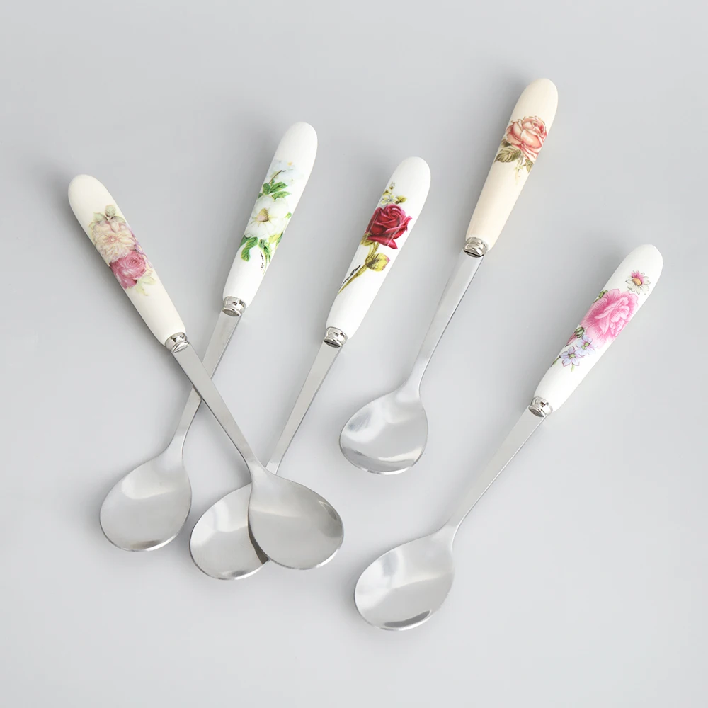1 шт. милые цветы из нержавеющей стали мини кофейная ложка Кухонная чайная ложка с длинной ручкой керамика мороженое десертная чайная ложка