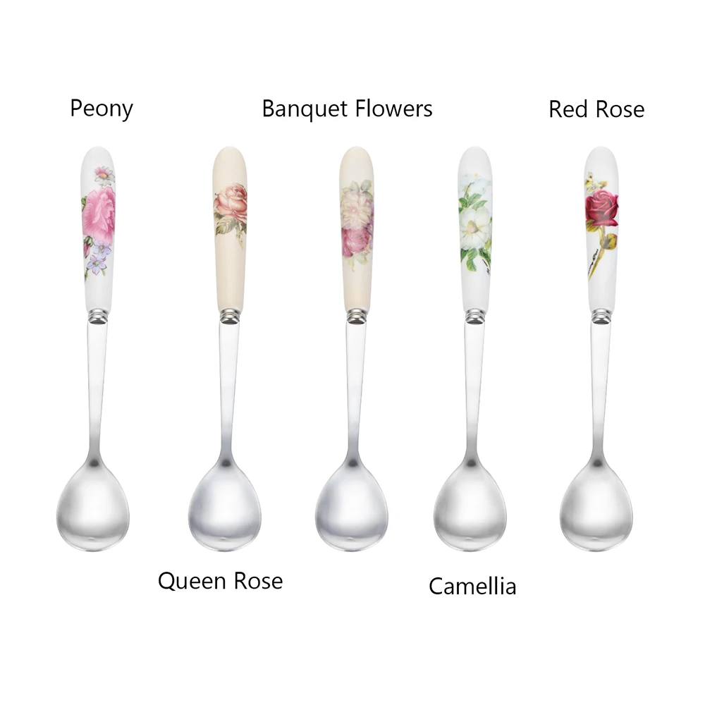 1 шт. Милая Мини-ложка для кофе из нержавеющей стали с цветами, кухонная чайная ложка с длинной ручкой, керамическая ложка для мороженого, десерта, чая