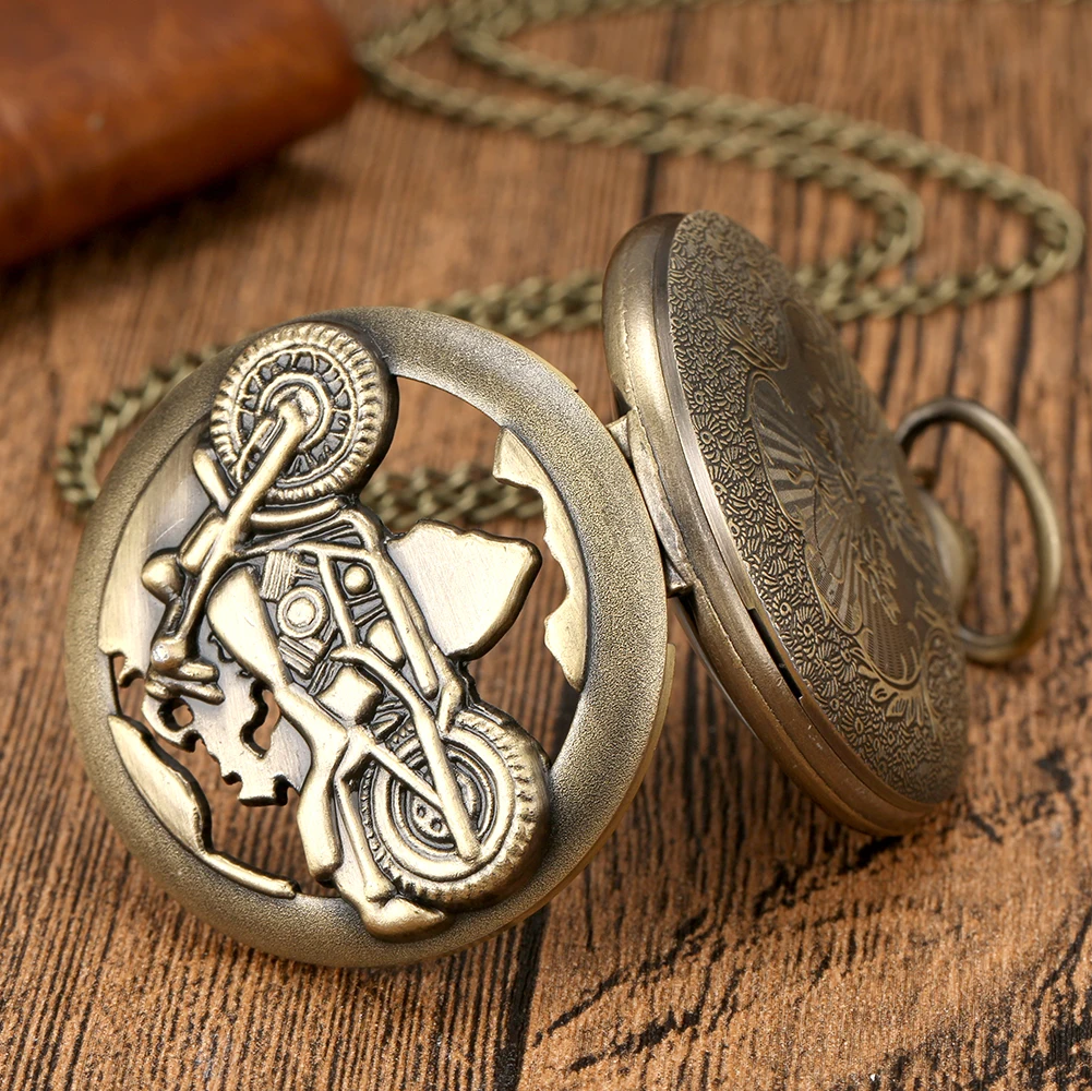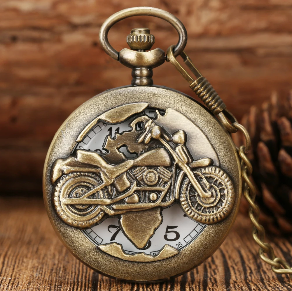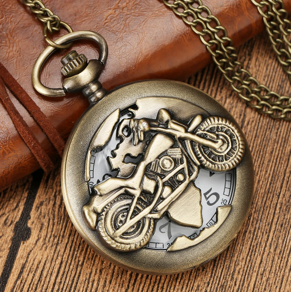 Античные, ретро, бронзовые Мотоцикл полый кварцевые карманные часы ожерелье Fob цепь кулон Стимпанк Мужские лучший подарок дропшиппинг